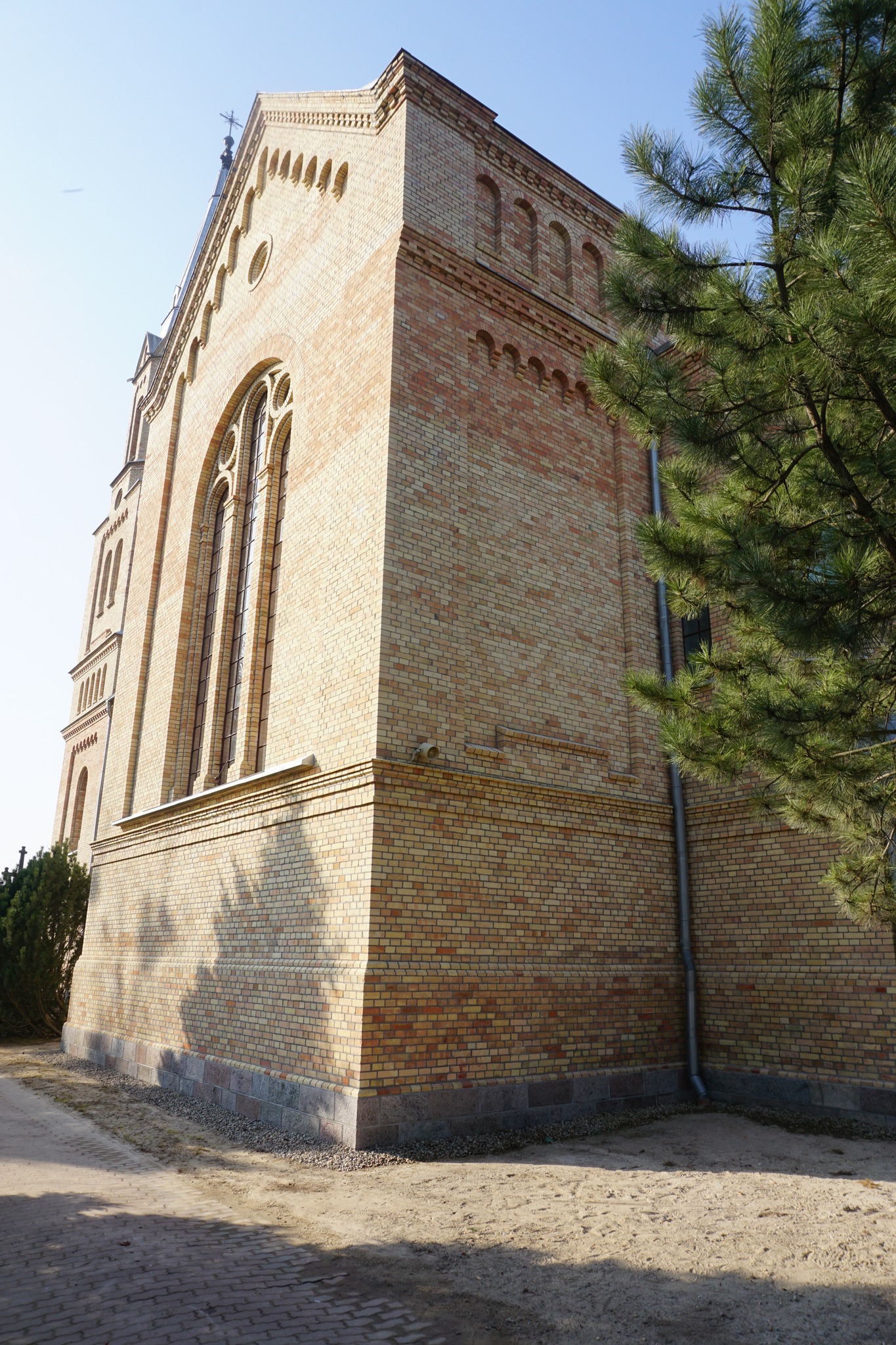 Nowa świątynia, wzniesiona z cegły wypalanej z miejscowej gliny, powstała w latach 1899-1904. W 1905 roku kościół został konsekrowany przez biskupa Edwarda Roppa. Poprzedni drewniany kościół przeniesiono na cmentarz grzebalny, gdzie do dziś pełni funkcję kaplicy cmentarnej.