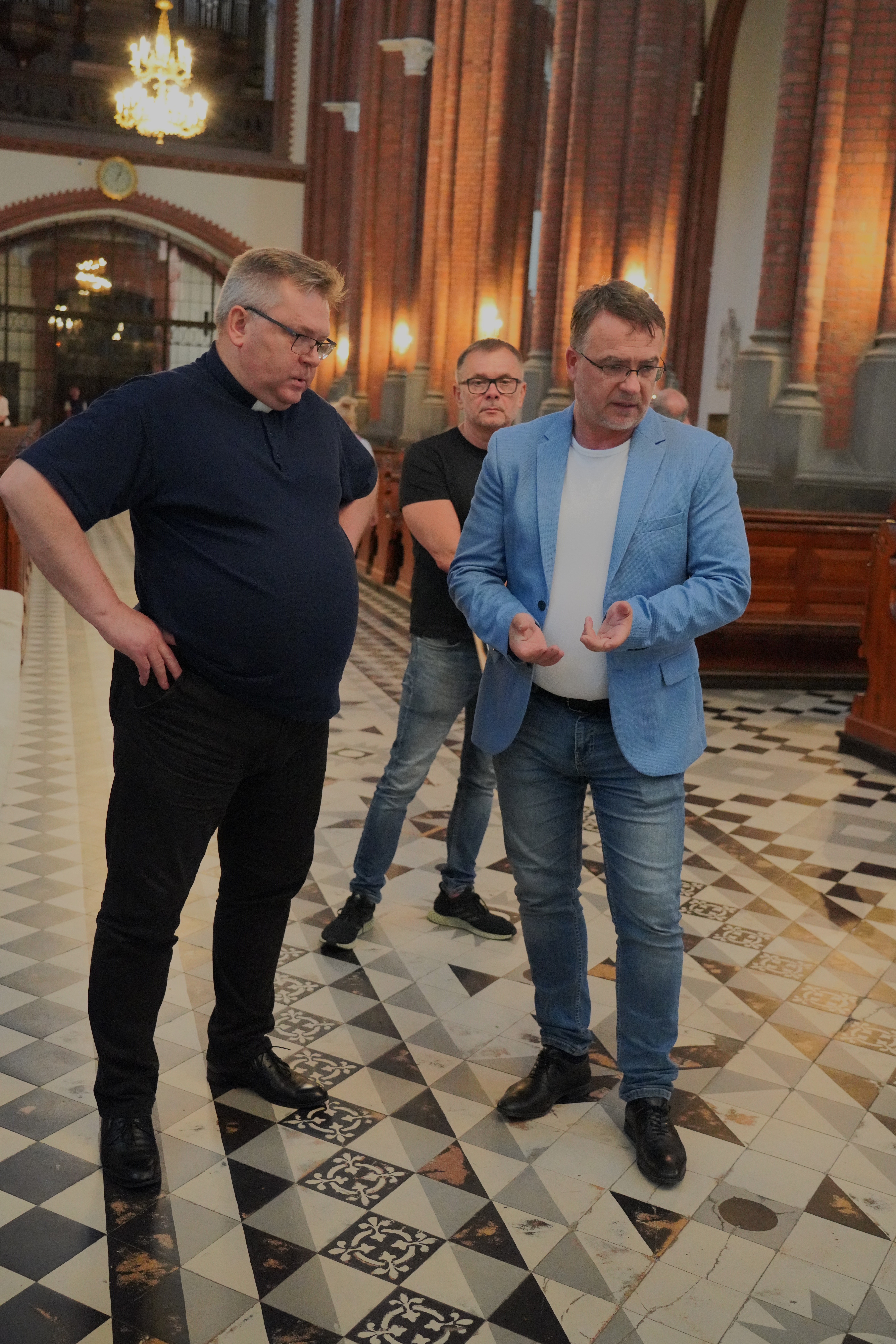 „W przypadku obiektów takiej rangi, jak katedra białostocka, każda ingerencja – nawet tak potrzebna jak remont posadzki czy stolarki – musi być przeprowadzona z pełną świadomością wartości zabytku. Zarówno kościół, jak i jego posadzka, są wpisane do rejestru zabytków, co zobowiązuje nas do działania zgodnego ze sztuką konserwatorską, z poszanowaniem historycznej tkanki. Jednocześnie zdajemy sobie sprawę, że świątynia żyje – służy ludziom, którzy tu się modlą, uczestniczą w liturgii, spędzają ważne chwile. Dlatego wszystkie działania planujemy tak, by łączyć troskę o dziedzictwo z realną poprawą warunków dla wiernych” – powiedział Adam Musiuk, Podlaski Wojewódzki Konserwator Zabytków.