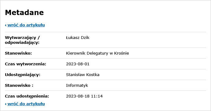 Informacje o publikacji dokumentu