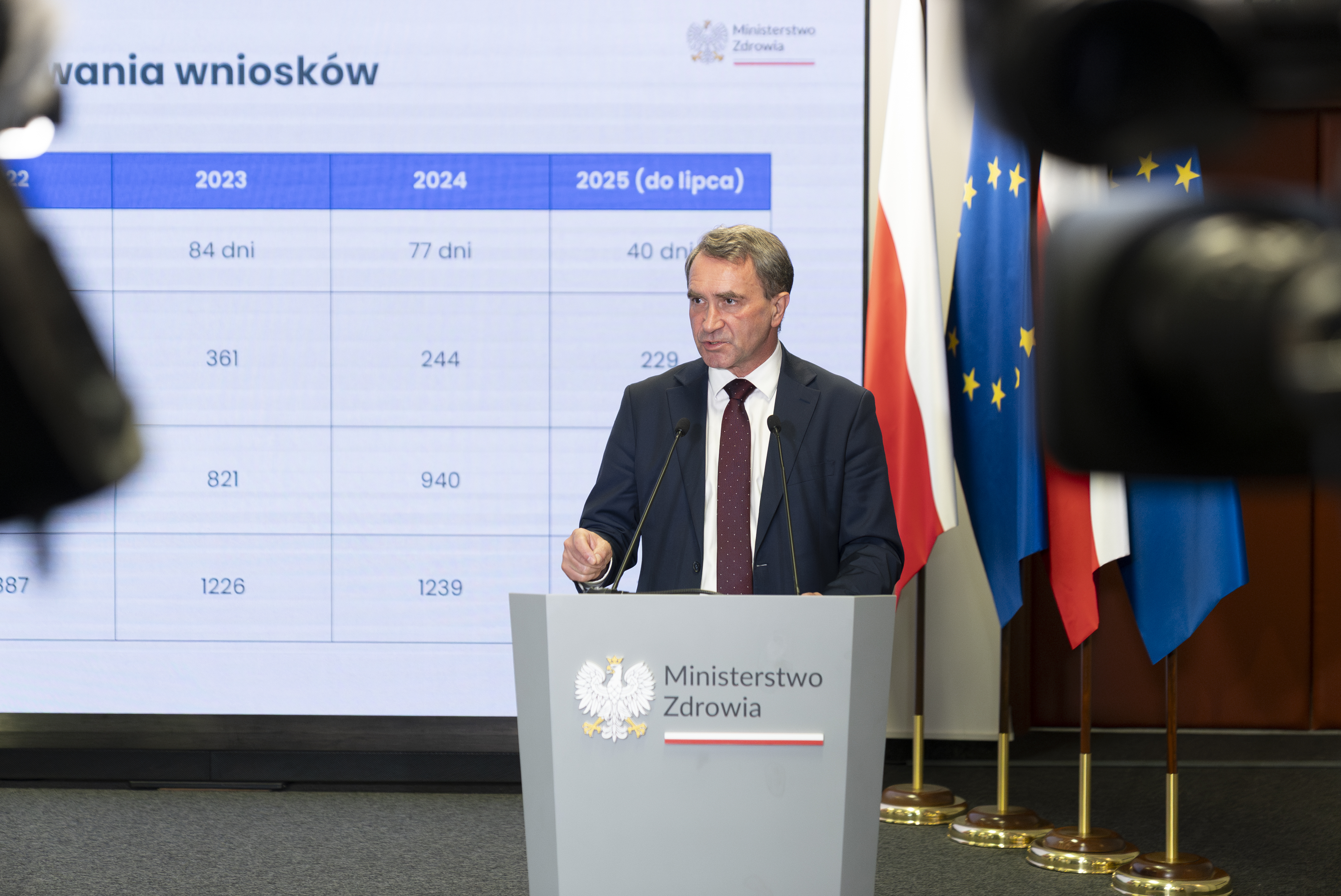 Celem Ministerstwa Zdrowia jest systematyczne skracanie czasu procedowania wniosków o refundację. Liczba dni aktywnego procedowania wniosku od 2022 do 2025 r. (do lipca) spadła z 479 do 229 dni. „Procedowanie po naszej stronie wniosków refundacyjnych mocno przyspieszyło i chcemy, żeby te okresy były jeszcze krótsze” - podkreślał.