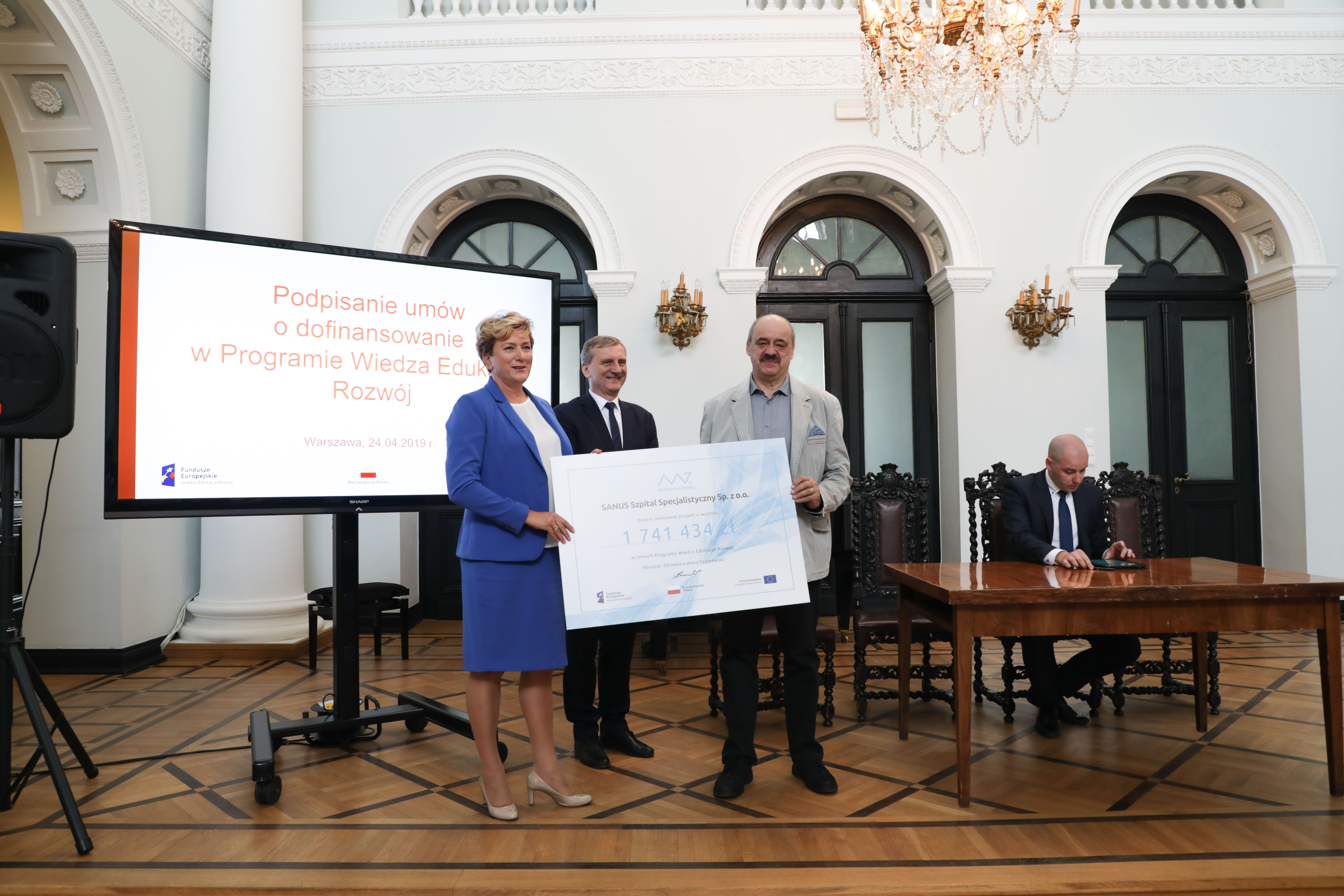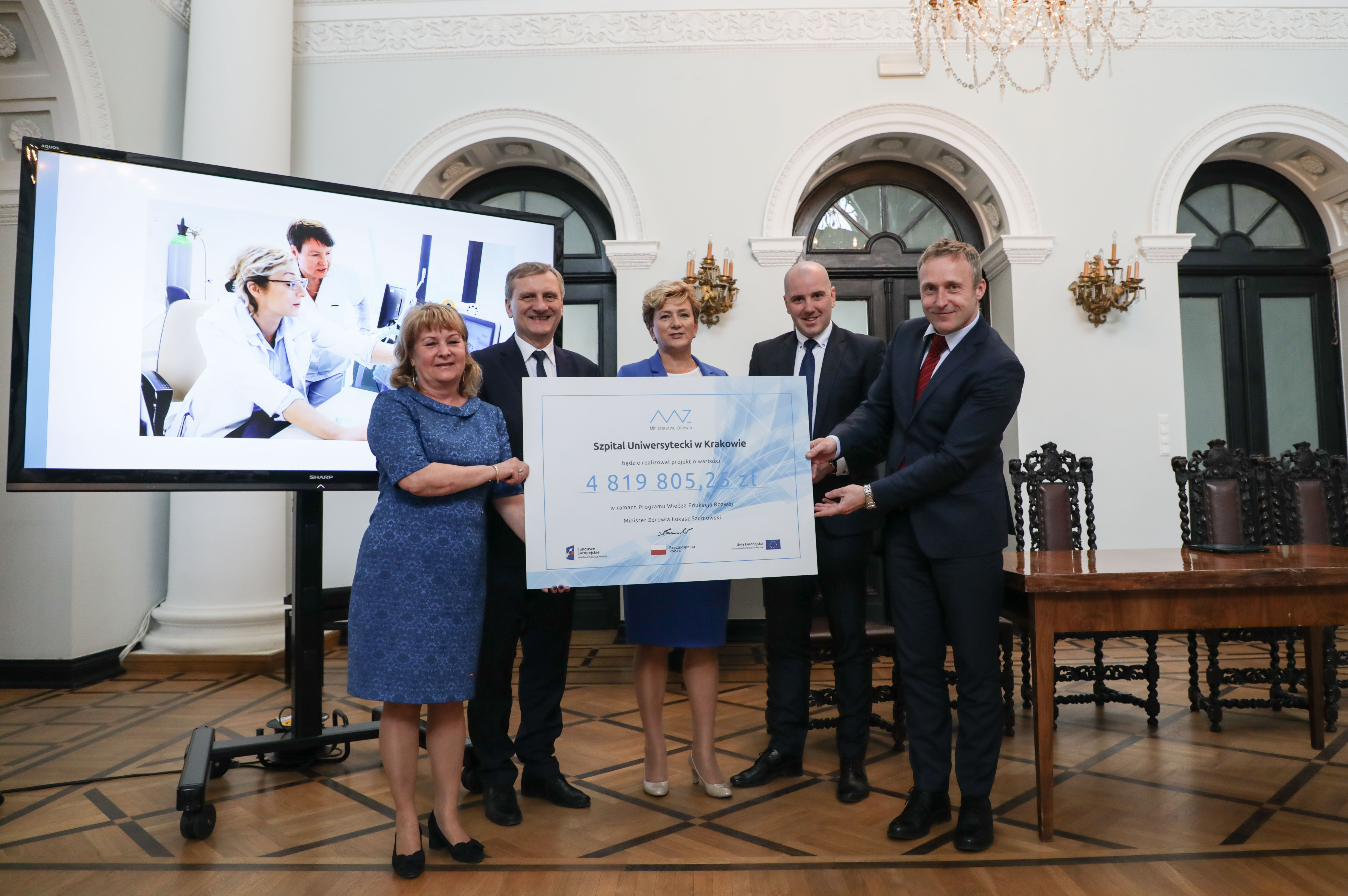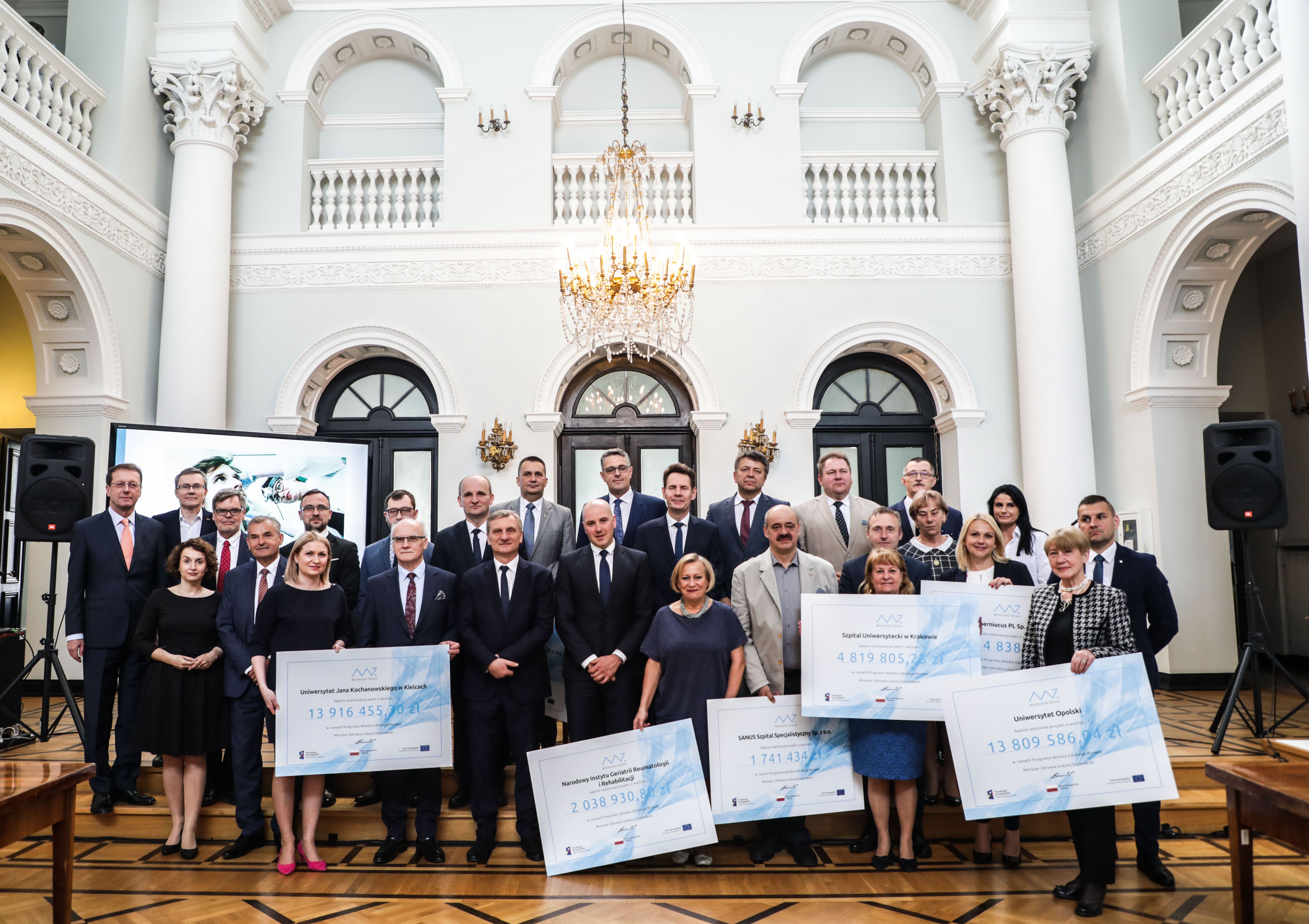 Duża pula z przyznanych dzisiaj środków – 64,7 mln zł – zostanie przeznaczona na powstanie 5 nowych centrów symulacji medycznej. Mają one zostać otwarte w Rzeszowie, Kielcach, Warszawie, Opolu i Zielonej Górze. W marcu podpisano umowę na centrum symulacji w Krakowie. Wliczając tą umowę, na nowe centra zostanie przekazane 78,5 mln. To tam – w miejscach spełniających najwyższe unijne standardy kształcenia – będą się uczyć przyszłe kadry medyczne. Nowocześnie wyposażone sale i pracownie wspomagane przez systemy komputerowe stwarzają możliwość wyeliminowania błędów na etapie nauki. Zajęcia odbywać się będą z fantomami, które potrafią doskonale naśladować różne objawy i zachowania ludzi – oddychają, płaczą, nawet krwawią. Podłączona do nich nowoczesna aparatura diagnostyczna obrazuje taki sam stan jak u żywego człowieka. Dzięki temu możliwe będzie wykonanie nawet najbardziej skomplikowanych zabiegów medycznych, powtórzenie ich, a także obejrzenie filmu z przeprowadzonej symulacji.