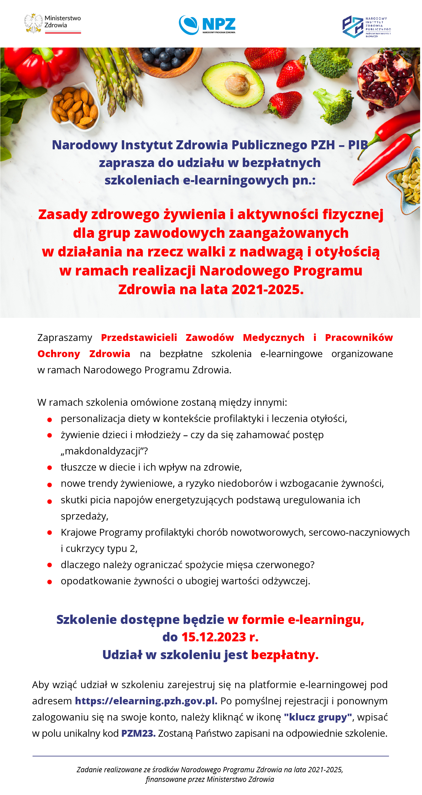 Bezpłatne szkolenie e-learningowe pn. Zasady zdrowego żywienia i aktywności fizycznej dla grup zawodowych zaangażowanych w działania na rzecz walki z nadwaga i otyłością w ramach realizacji Narodowego Programu Zdrowia na Lata 2021-2025
