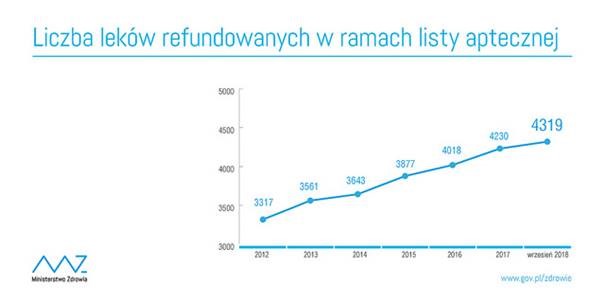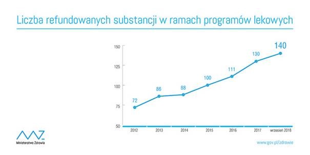 W ich efekcie liczba leków refundowanych w ramach listy aptecznej, jak i substancji refundowanych w ramach programów lekowych systematycznie rośnie, co potwierdzają zamieszczone wykresy.