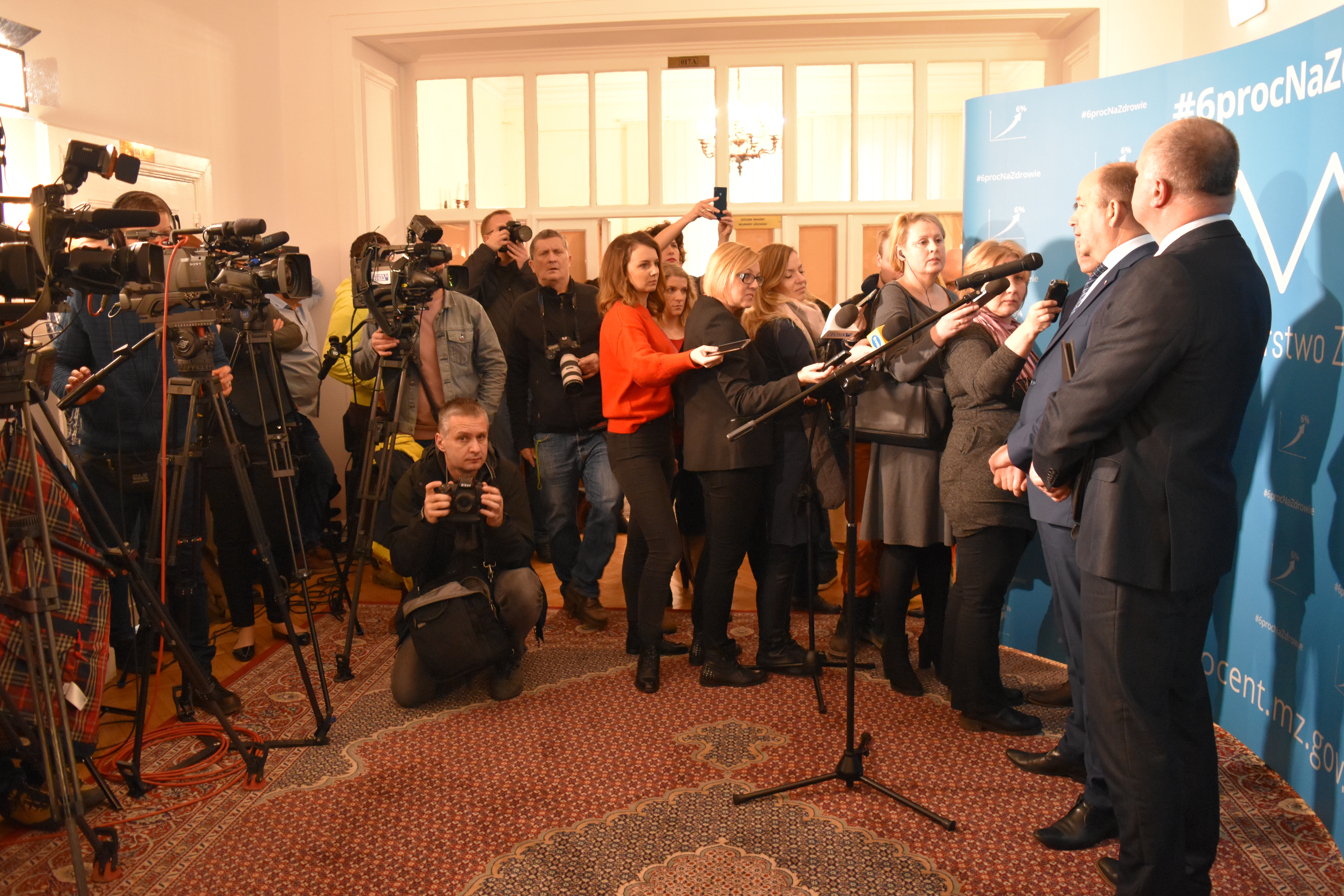 Minister zdrowia Konstanty Radziwiłł wraz z wicewojewodą łódzkim Karolem Młynarczykiem oraz dyrektorem łódzkiego OW NFZ Arturem Olesińskim mówił dziś w Łodzi o finansowaniu służby zdrowia w kontekście systematycznego wzrostu nakładów do poziomu 6% PKB.