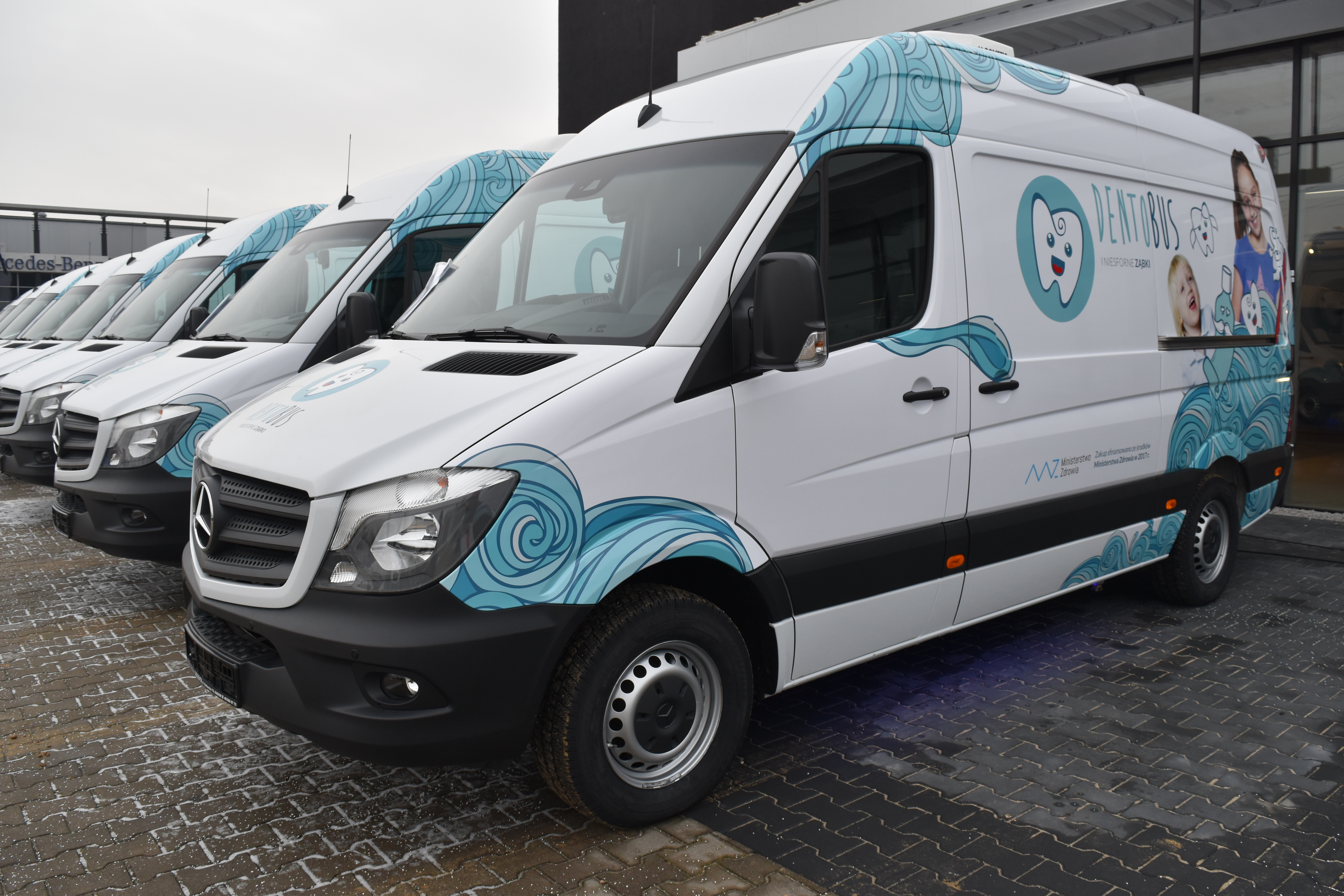 Zakupiliśmy 16 dentobusów. Są to w pełni wyposażone gabinety zabiegowe z aparatami RTG i narzędziami do leczenia stomatologicznego uzębienia dzieci.