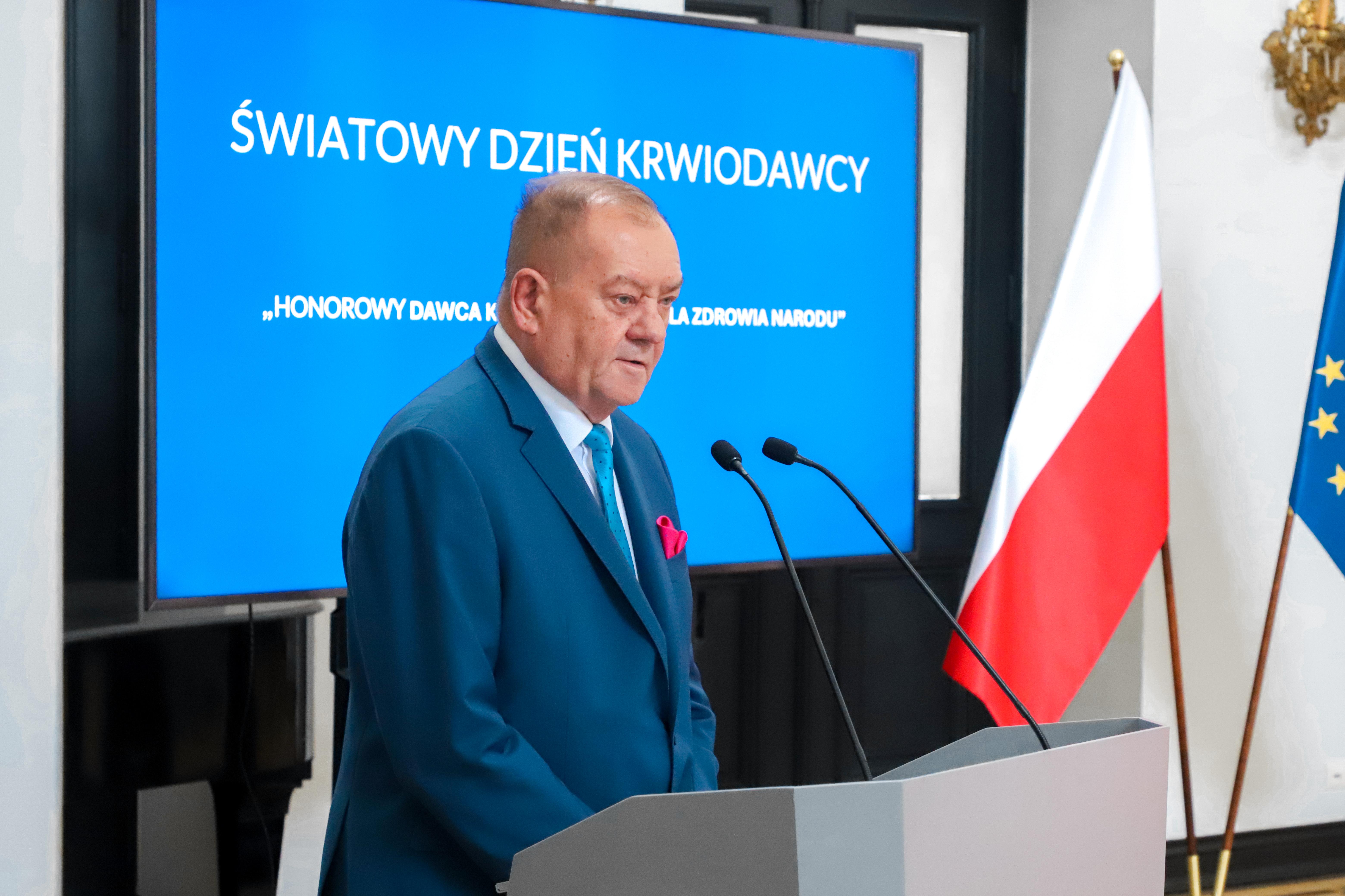 Dzisiaj jest wielki i ważny dzień dla Was - krwiodawców, ale także dla wszystkich, którzy z Waszej postawy solidarności już skorzystali i jeszcze skorzystają. Każdy z nas może kiedyś potrzebować pomocy. Właściwie trudno mówić o współczesnej medycynie bez ofiary, którą nam dajecie - powiedziała minister zdrowia.