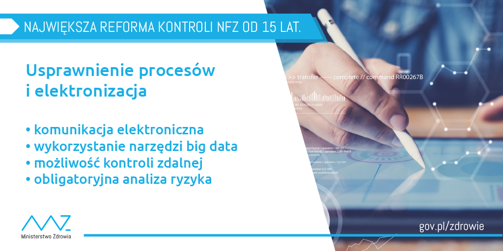 Dzięki wprowadzanym regulacjom Narodowy Fundusz Zdrowia, bez istotnego poszerzania uprawnień kontrolerów, będzie mógł funkcjonować ze skutecznością podobną do Krajowej Administracji Skarbowej, odpowiedzialnej za bezprecedensowe uszczelnienie systemu podatkowego w latach 2017-2018. Warto nadmienić, że NFZ każdego roku przeprowadza prawie 2 tysiące kontroli. W obecnym stanie prawnym nie funkcjonują zasady i uprawnienia podmiotów kontrolowanych wynikające np. z Konstytucji Biznesu, a tryb prowadzenia kontroli nie przewiduje elektronizacji obiegu dokumentów oraz wykorzystywania analiz big data.