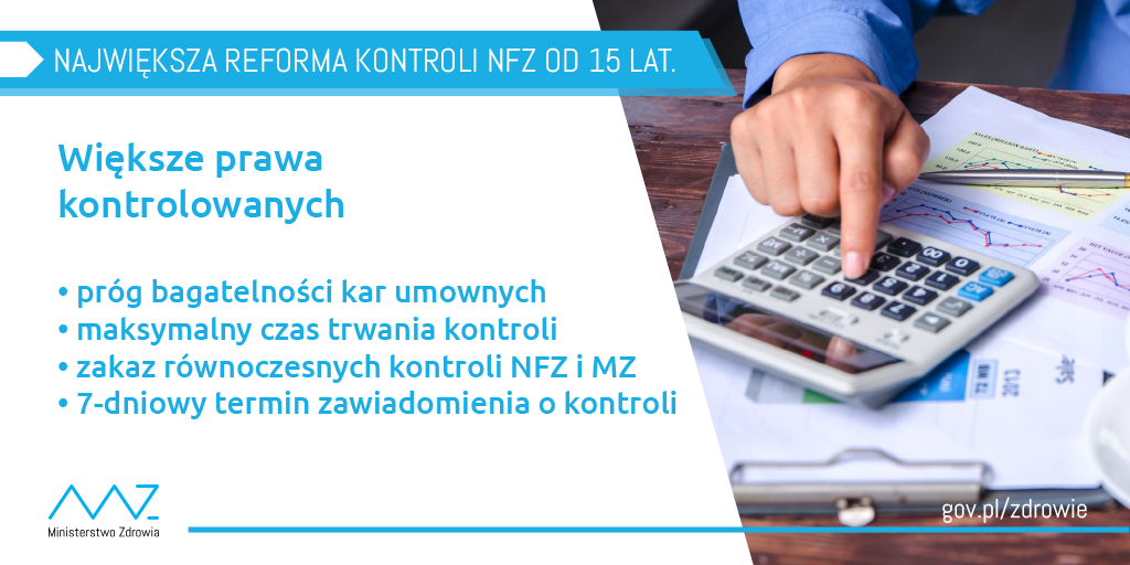 Ponadto będzie obowiązywać zakaz jednoczesnej kontroli ze strony ministra zdrowia i NFZ. Zakazane będzie także ponowne kontrolowanie tego samego obszaru w tym samym podmiocie. Czas trwania wszystkich kontroli Funduszu w jednostkach podmiotu kontrolowanego w roku kalendarzowym nie będzie mógł przekroczyć określonej liczby dni (z wyłączeniem kontroli umowy o udzielanie świadczeń opieki zdrowotnej w zakresie leczenia szpitalnego). Co do zasady liczba dni kontroli będzie powiązana z wielkością kwoty wypłaconej podmiotowi kontrolowanemu przez NFZ w roku poprzednim. Przykładowo w przypadku kontraktu o wartości do 2 mln zł kontrola Funduszu będzie mogła trwać 12 dni. Wprowadzona zostanie także instytucja zawiadomienia o planowanej kontroli – w sytuacjach, w których nie uniemożliwia to skutecznego skontrolowania działania podmiotu.