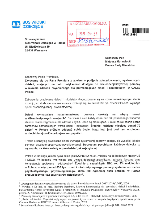 Petycja o podjęcie zdecydowanych, systemowych działań, mających na celu zwiększenie dostępu do wielospecjalistycznej pomocy w zakresie zdrowia psychicznego dla potrzebujących dzieci i nastolatków
