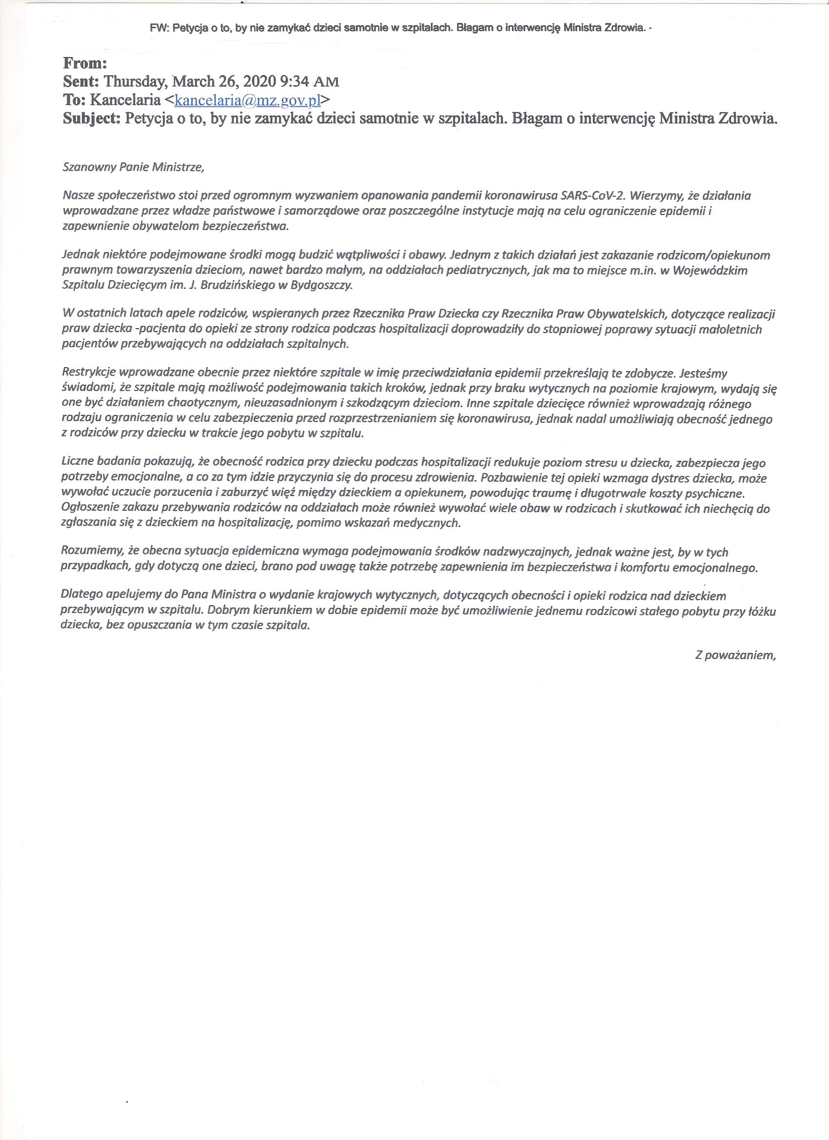 | Petycja ws. niezamykania dzieci samotnie w szpitalach | 2.0 | 27.04.2020 10:20 Mateusz Klimczak |