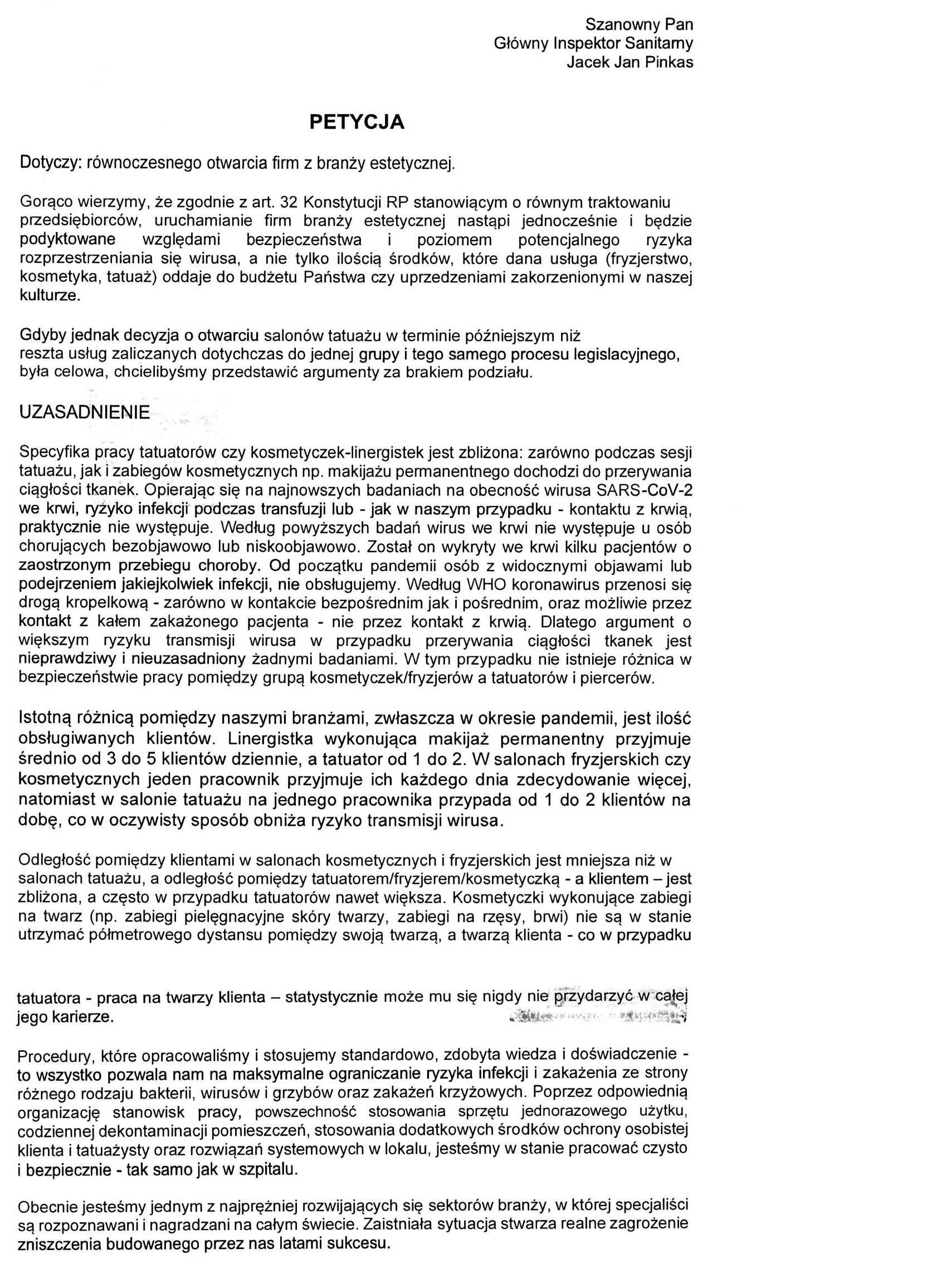 Petycja ws. równoczesnego otwarcia firm z branży estetycznej