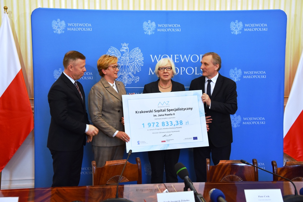 Z kolei wiceminister zdrowia Zbigniew J. Król podpisał umowę o dofinansowanie projektu „Weź głęboki oddech” realizowanego przez Krakowski Szpital Specjalistyczny im. Jana Pawła II. Wartości umowy to ponad 1,9 mln złotych.