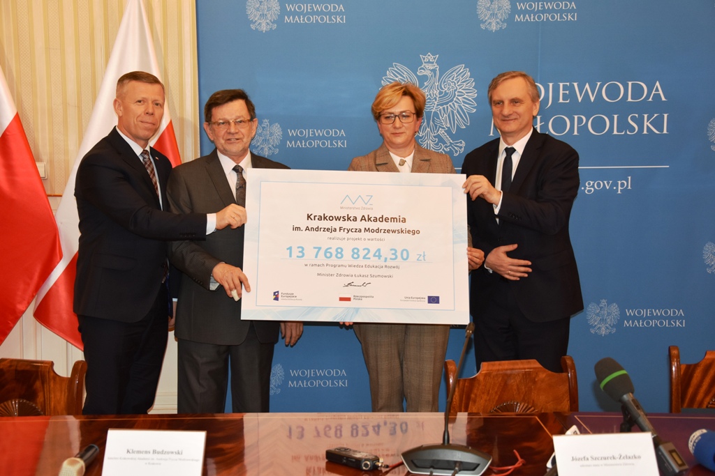 Wiceminister zdrowia Józefa Szczurek-Żelazko podpisała umowę o dofinansowanie na utworzenie Wieloprofilowego Centrum Symulacji Medycznej w ramach Projektu „Kształtowanie umiejętności klinicznych w warunkach symulowanych w Krakowskiej Akademii im. Andrzeja Frycza Modrzewskiego”. Ministerstwo Zdrowia przekaże na ten cel 13,7 mln złotych.