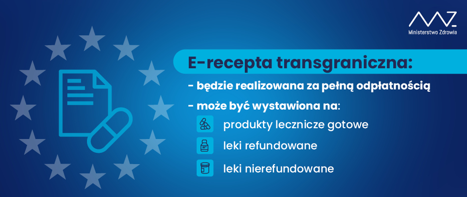 E-recepta transgraniczna to określenie stosowane do nazywania recepty elektronicznej, którą można zrealizować w innym państwie Unii Europejskiej niż to, w jakim została wystawiona. Będzie ona realizowana za pełną odpłatnością i może być wystawiona na produkty lecznicze gotowe, o kategorii dostępności "Rp" (wydawane z przepisu lekarza) lub "OTC"(wydawane bez przepisu lekarza), leki refundowane oraz nierefundowane. Nie jest możliwe wystawienie e-recepty transgranicznej na leki psychotropowe, odurzające, recepturowe, produkty lecznicze o kategorii dostępności "Rpz" (wydawane z przepisu lekarza do zastrzeżonego stosowania), środki spożywcze specjalnego przeznaczenia żywieniowego oraz wyroby medyczne.