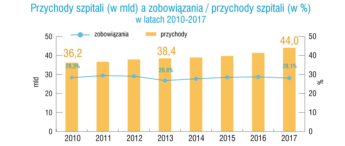 Zobowiązania wymagalne szpitali obniżają się. Rok temu suma zobowiązań wymagalnych wszystkich szpitali wynosiła blisko 1,7 mld zł, obecnie jest to 1,47 mld zł, przy czym ponad połowa dotyczy dostaw m.in. materiałów opatrunkowych, leków oraz sprzętu.