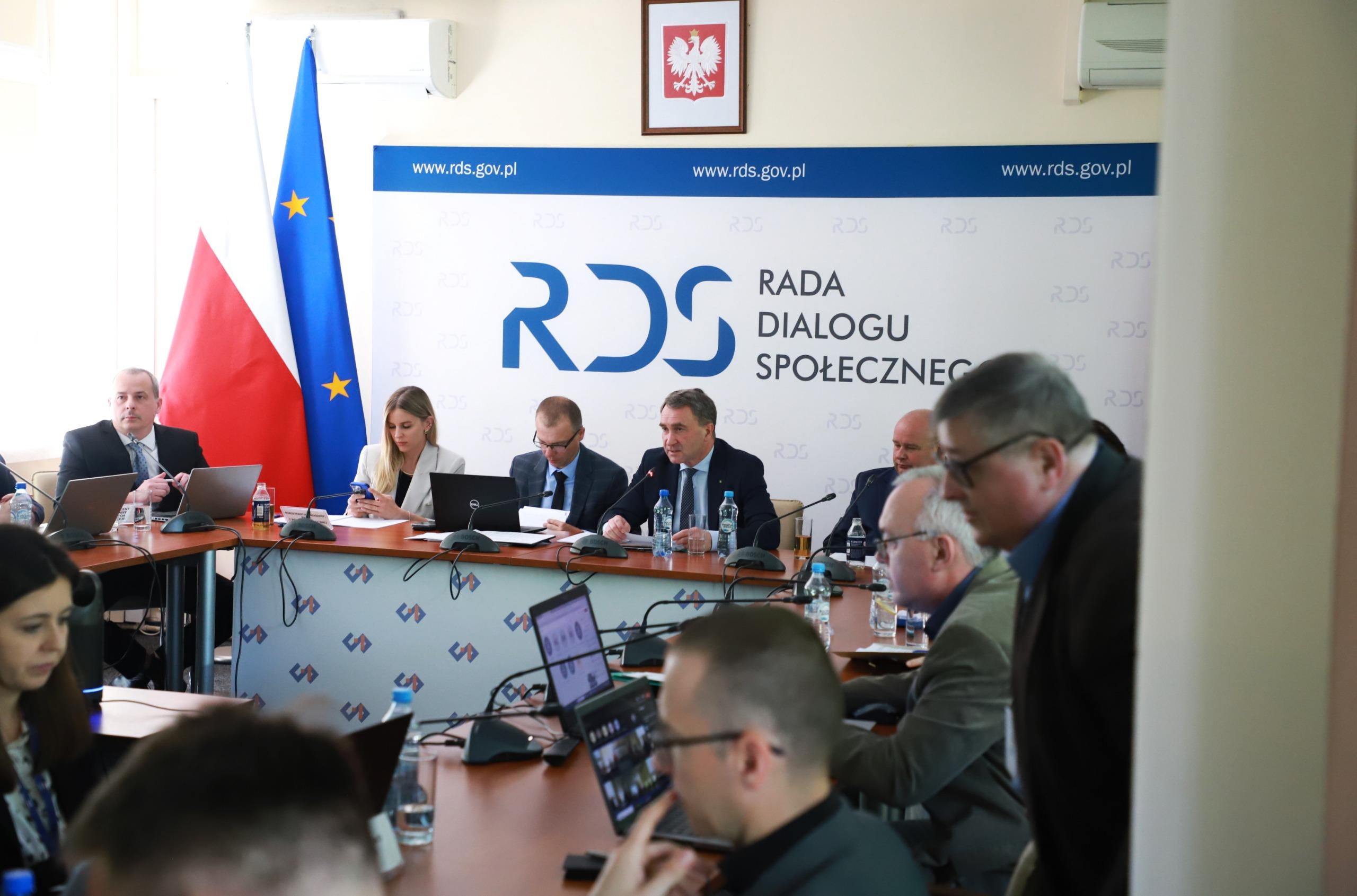 14 maja br. w Centrum Partnerstwa Społecznego „Dialog” odbyło się posiedzenie Trójstronnego Zespołu do Spraw Ochrony Zdrowia. W posiedzeniu uczestniczyli przedstawiciele największych reprezentatywnych central związków zawodowych oraz organizacji pracodawców, przedstawiciele Ministerstwa Zdrowia, AOTMiT, NFZ, Głównego Inspektoratu Pracy, Ministerstwa Rodziny, Pracy i Polityki Społecznej. Posiedzenie prowadził Wiceminister Marek Kos.