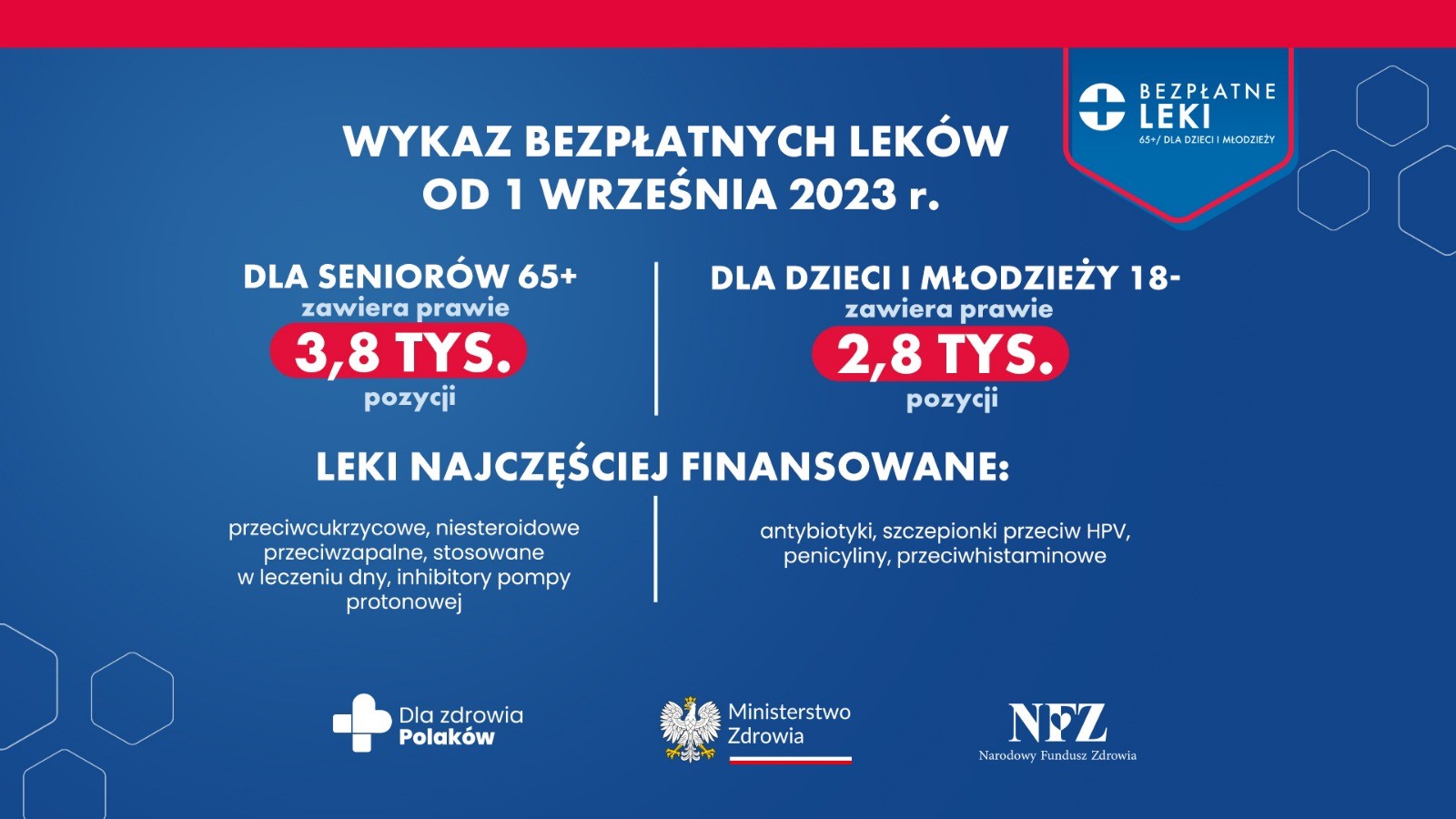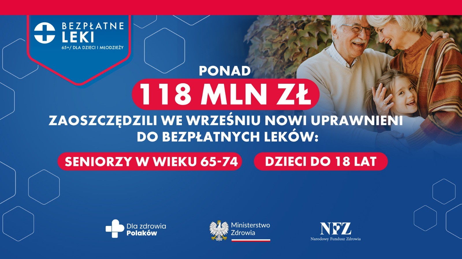 1 września 2023 r. ruszył program bezpłatnych leków, rozszerzony o osoby w wieku 18- i 65+. Dzięki temu pacjenci ci zaoszczędzili 118 mln zł. Łącznie z seniorami 75+, którzy dostęp do bezpłatnych leków mieli już od 2016 r. to oszczędności rzędu 200 mln zł.