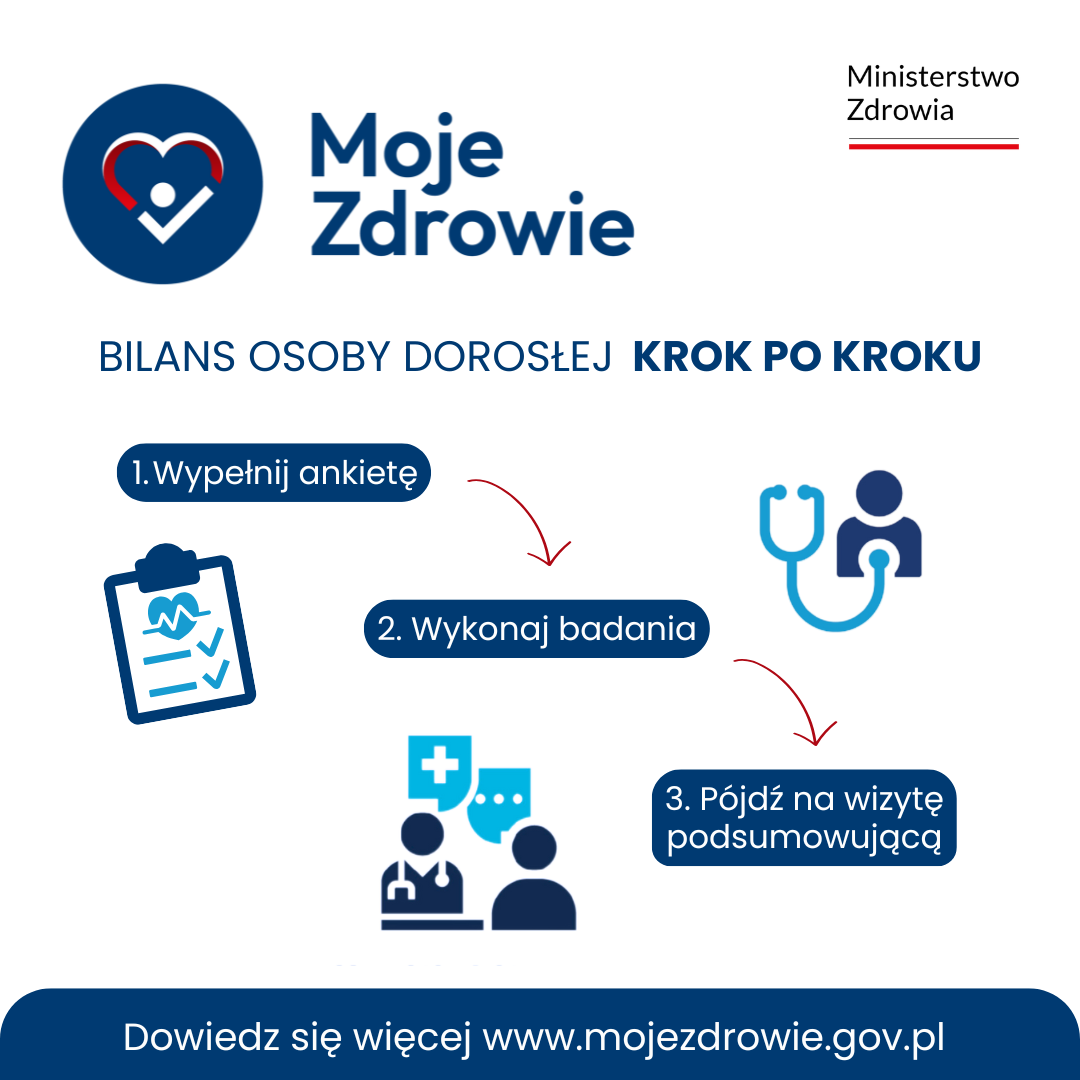 Więcej informacji w zakładce Moje Zdrowie - bilans zdrowia osoby dorosłej.