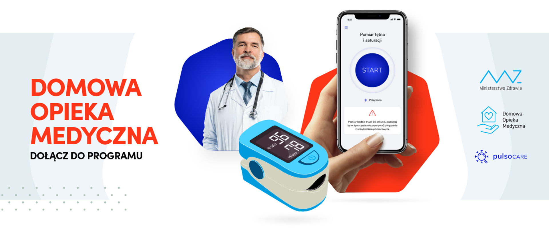 Pacjenci, którzy ukończyli 55 lat są automatycznie włączeni do programu Domowej Opieki Medycznej (DOM). Po stwierdzeniu pozytywnego wyniku na COVID-19 pracownik Poczty Polskiej dostarczy urządzenie do domu pacjenta.