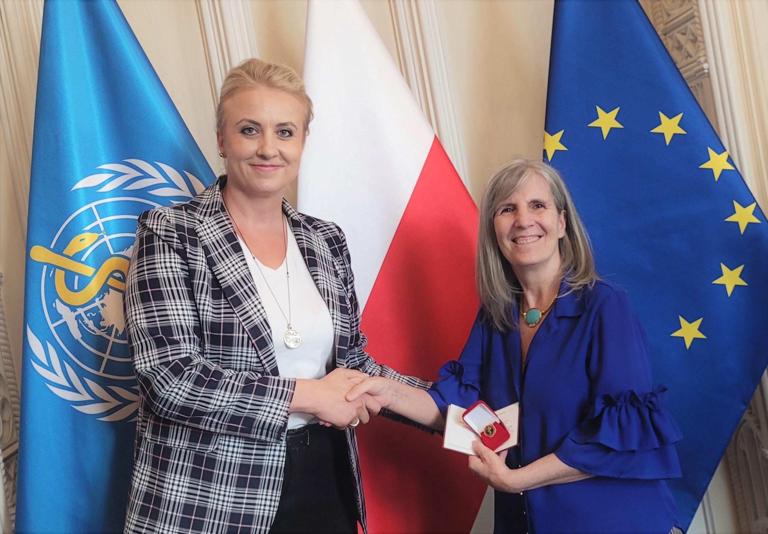 Minister zdrowia wręczyła dr Palomie Cuchi, ustępującej dyrektor WHO w Polsce, honorową odznakę „Za zasługi dla ochrony zdrowia”, w uznaniu za działania na rzecz wzmocnienia polskiego systemu ochrony zdrowia w związku z dużym napływem uchodźców ukraińskich.