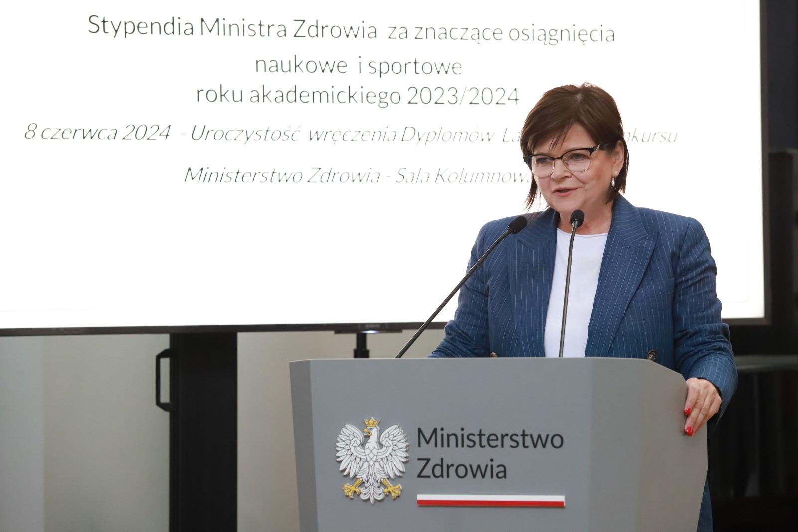 Stypendia wręczyła minister zdrowia Izabela Leszczyna 49 studentom za znaczące osiągnięcia w roku akademickim 2023/2024. 47 studentów otrzymało je za znaczące osiągnięcia naukowe, a 2 za znaczące osiągnięcia sportowe.