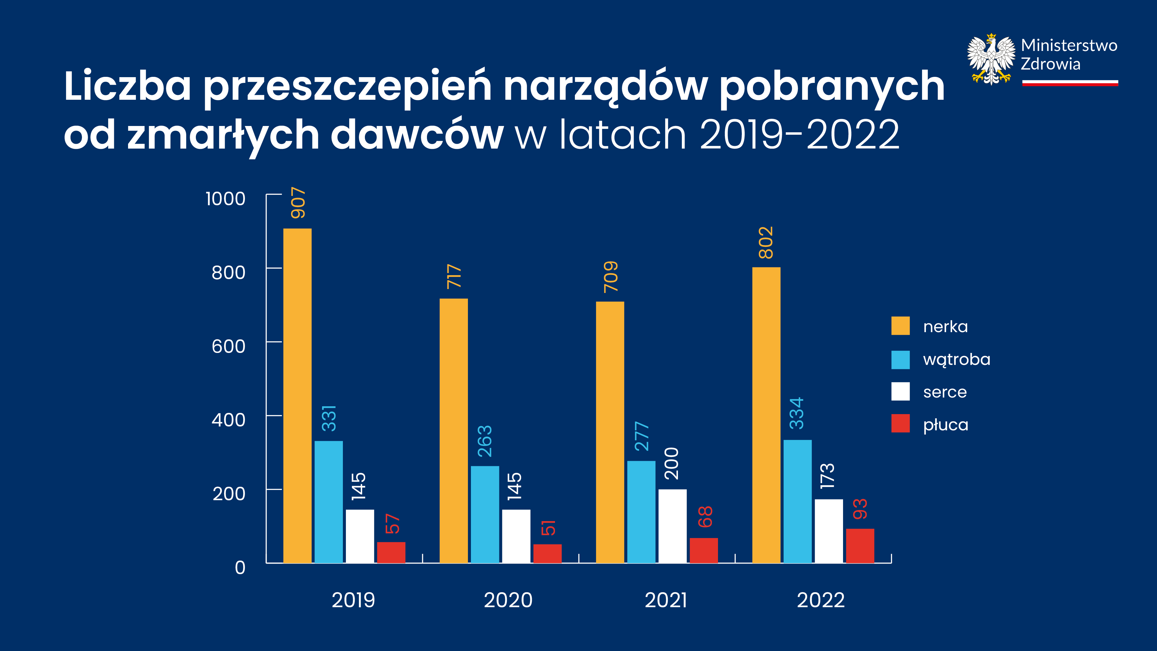 W czasie pandemia COVID-19 zmniejszyła się liczba przeszczepień narządów, ale już w roku 2022 była porównywalna z tą z 2019 roku. W roku 2022 dał się zauważyć w statystykach trend wzrostowy w zakresie liczby identyfikowanych i kwalifikowanych dawców zmarłych oraz liczby przeszczepianych narządów pobranych od żywych dawców. Więcej też było pobrań i przeszczepień wątroby i narządów klatki piersiowej.