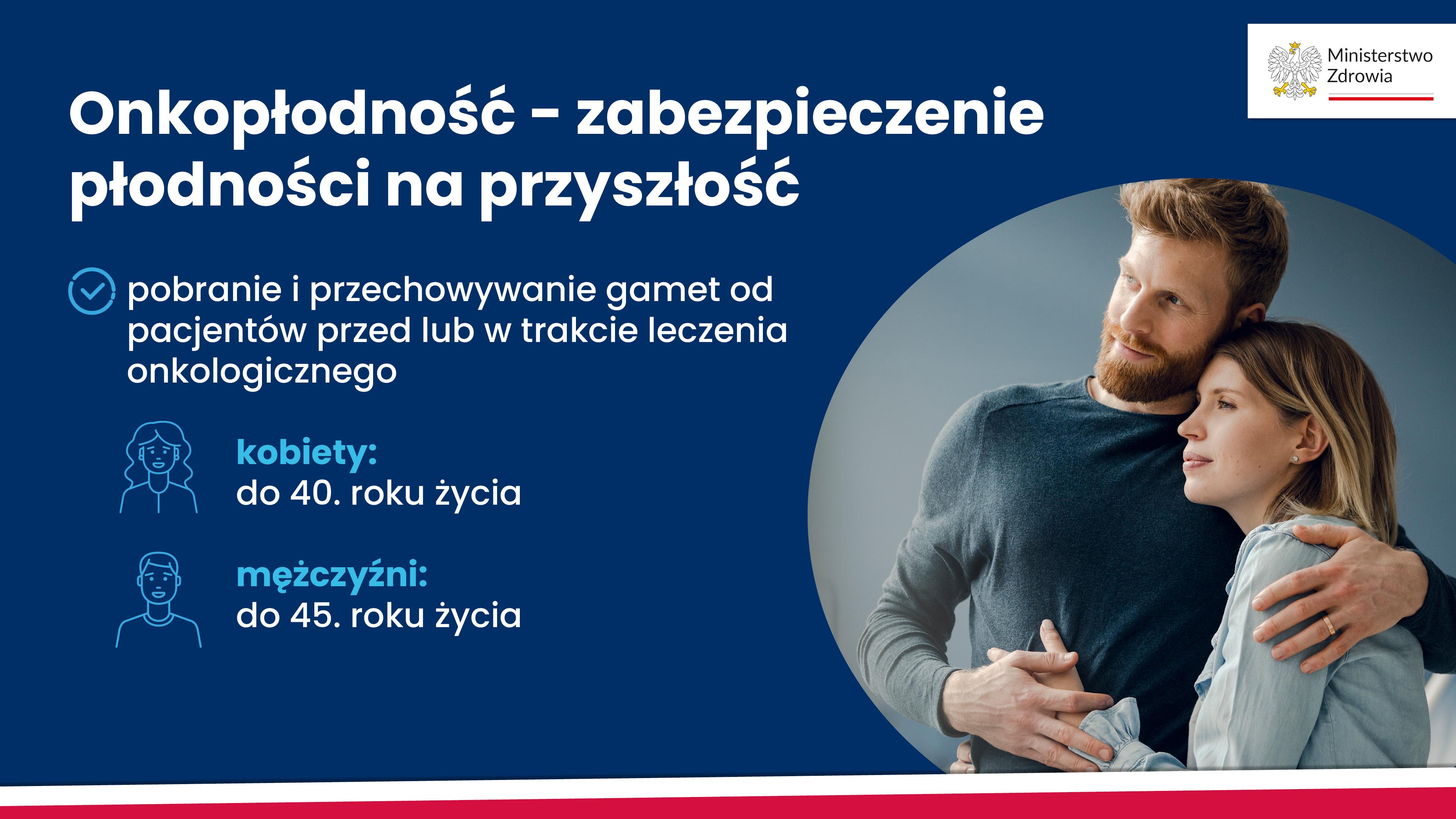 Z kolei pacjenci z chorobami onkologicznymi, będą mogli zabezpieczyć płodność na przyszłość poprzez pobranie i przechowywanie gamet przed lub w trakcie leczenia onkologicznego. W tym wypadku program obejmie kobiety od okresu dojrzewania do 40. roku życia i mężczyzn od okresu dojrzewania do 45. roku życia.