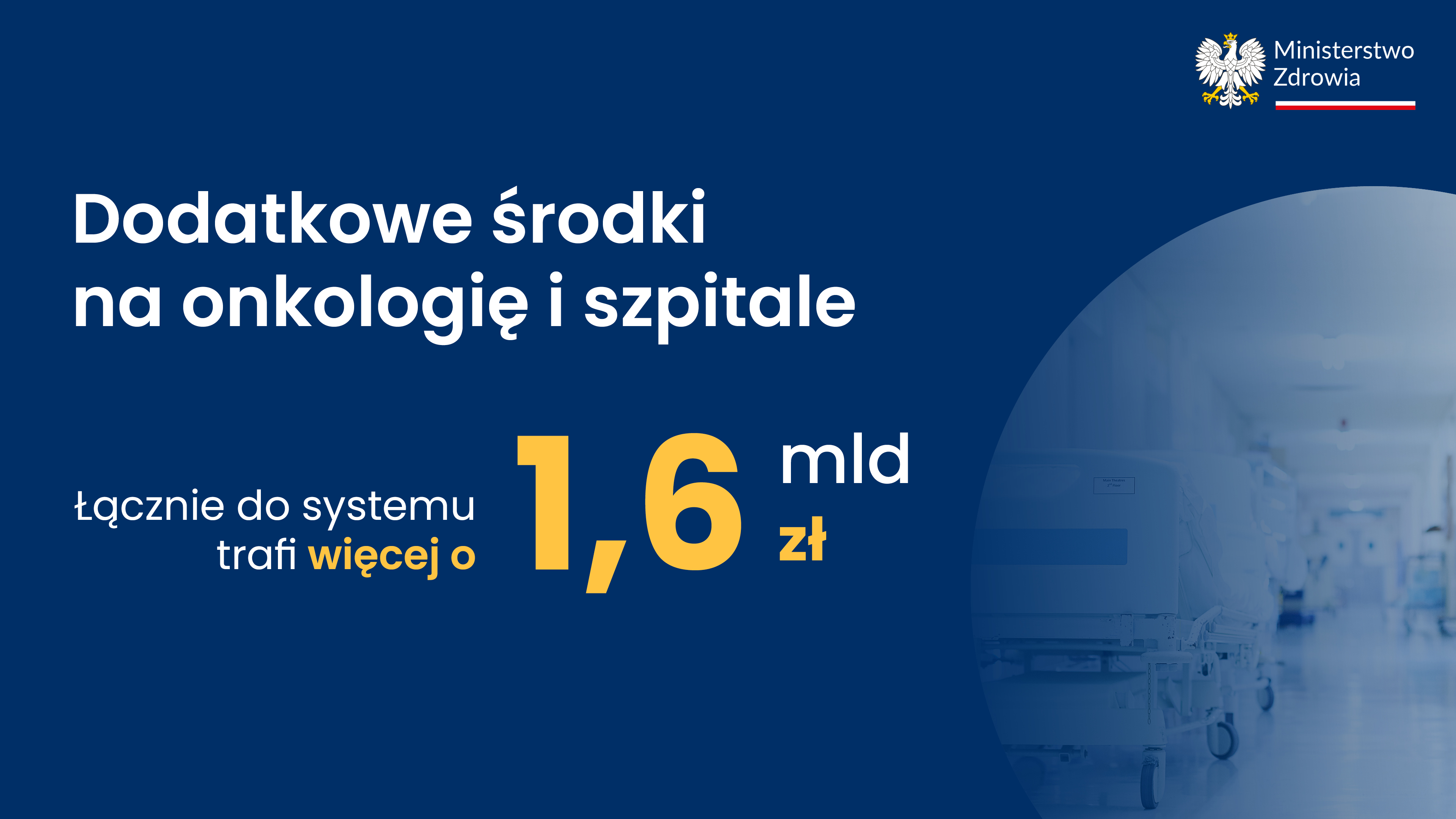 "Zwiększamy finansowanie systemu ochrony zdrowia - wspieramy onkologię i szpitale powiatowe. Łącznie do systemu trafi więcej o 1,6 mld zł" – wyjaśnia minister zdrowia Adam Niedzielski.