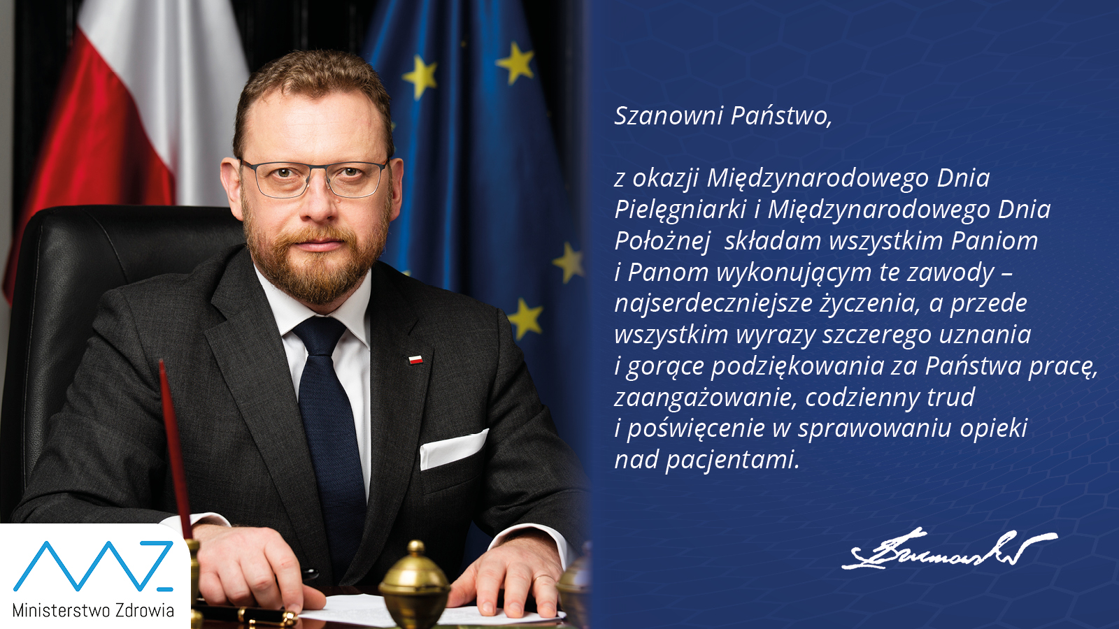 z okazji Międzynarodowego Dnia Pielęganiarki i Międzynarodowego Dnia Położnej skłądam wszystkim Paniom i Panom wykonującym te zawody - najserdeczniejsze życzenia, a przede wszystkim wyrazy szczerego uznania i gorące podziekowania za Państwa pracę, zaangażowanie, codzienny trud i poświęcenie w sprawowaniu opieki nad pacjentami.
