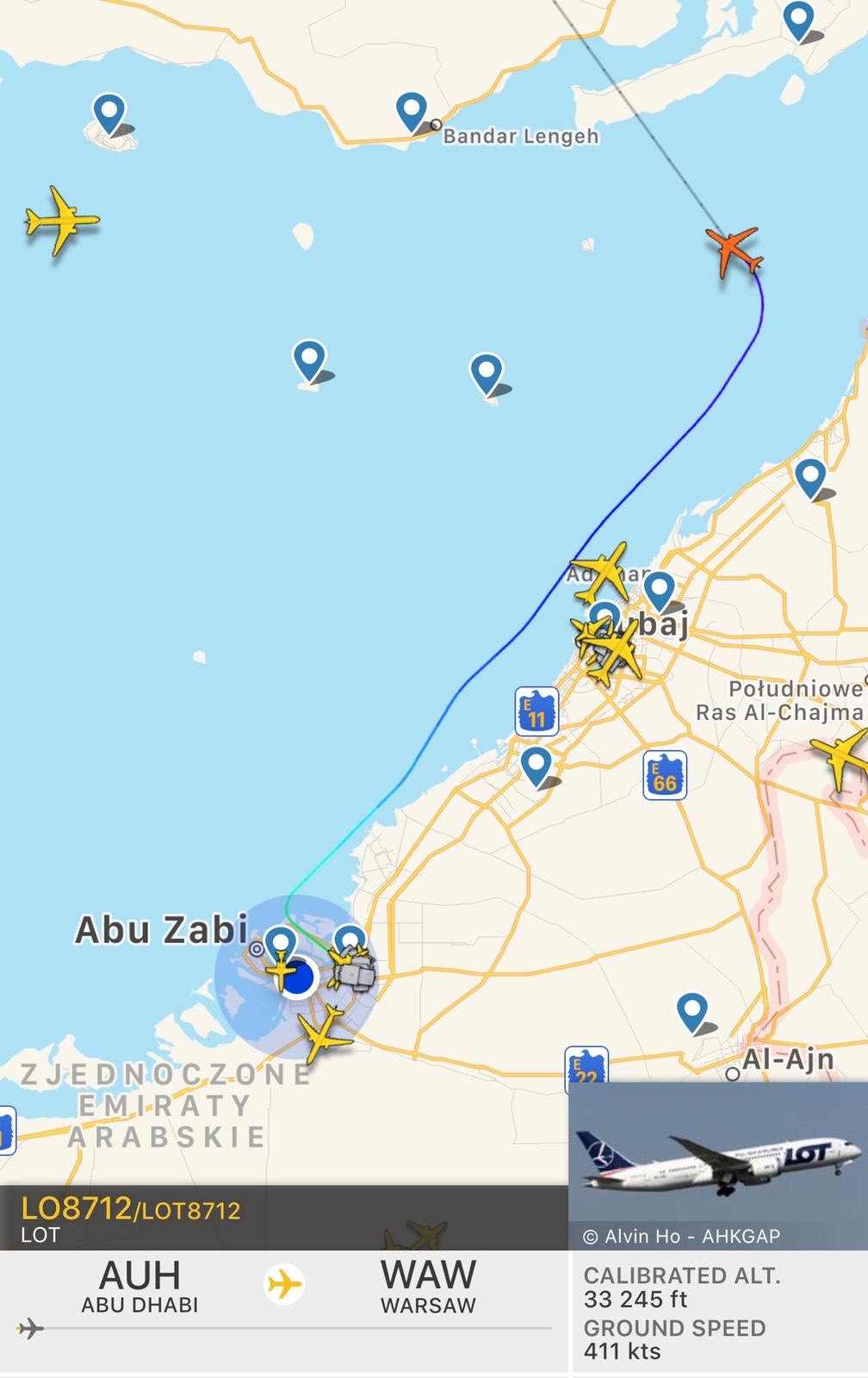 14 kwietnia 2020 r. z lotniska w Abu Zabi (AUH) odleciał kolejny samolot PLL LOT tym razem w locie specjalnym z Polakami wracającymi z Państwa Zjednoczonych Emiratów Arabskich do Polski