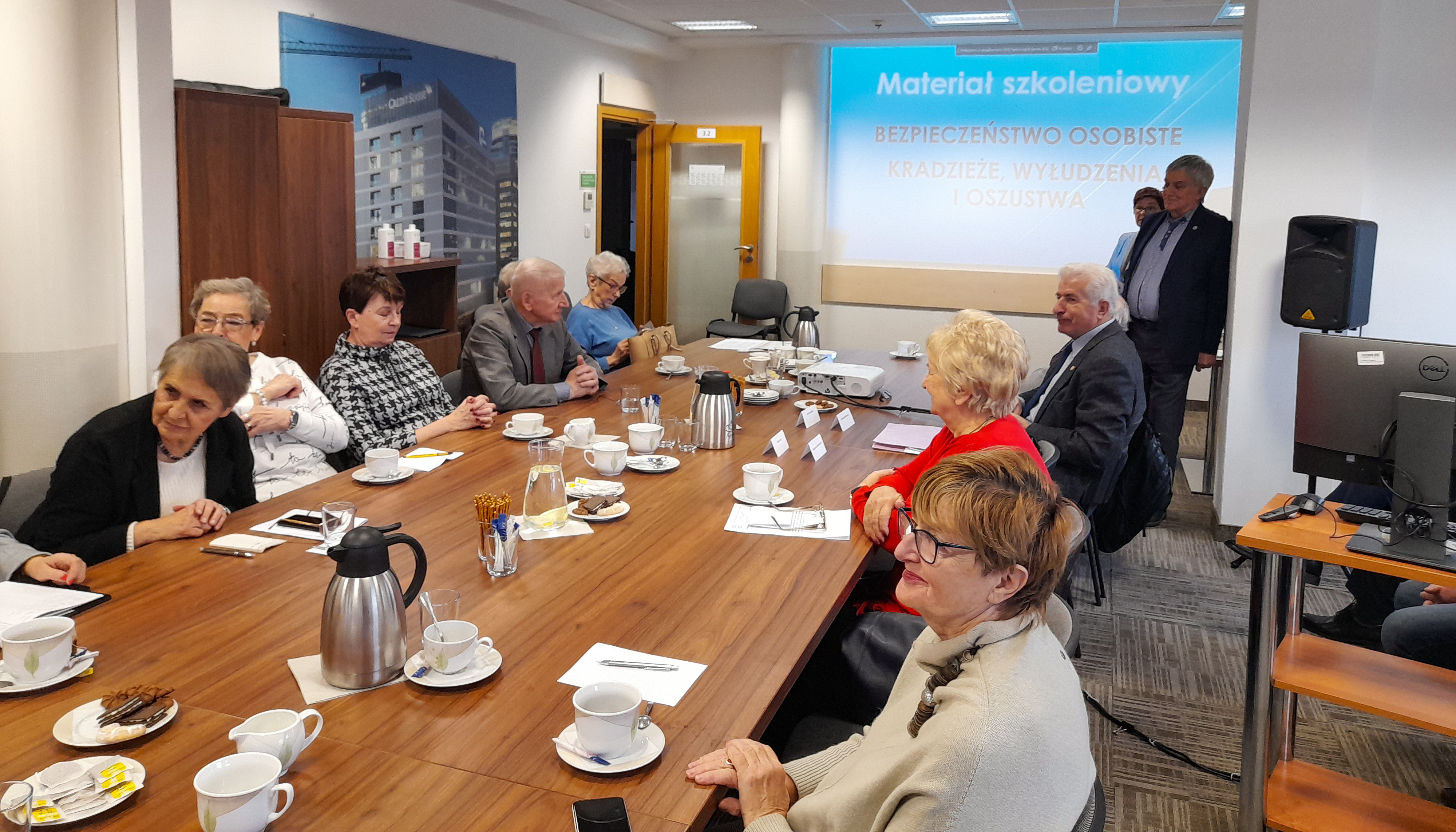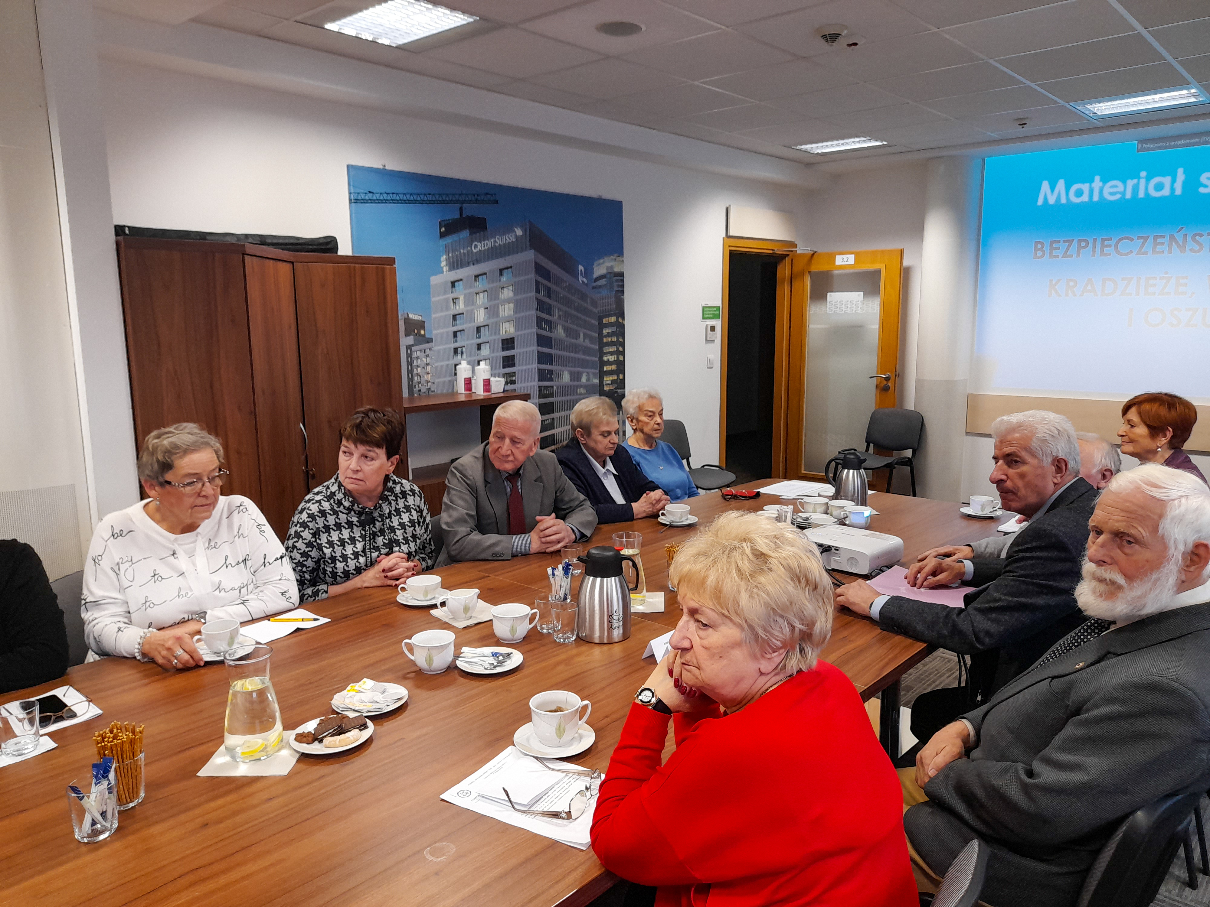 Spotkanie, zatytułowane „Ochrona Seniorów przed wyłudzeniami i oszustwami”, poprowadzili specjaliści z wszechstronnym policyjnym przygotowaniem zawodowym z zakresu prewencji kryminalnej, uzyskanym zarówno w Polsce jak i za granicą: Pan insp. w st. spocz. Jan Strzeliński - Prezes Warszawskiego Oddziału Stowarzyszenia Komendantów Policji Polskiej, Pan mł. insp. w st. spocz. Marek Luty – Wiceprezes WO SKPP oraz Pani mł. insp. w st. spocz. Małgorzata Chmielewska - psycholog policyjny. Podczas 2-godzinnego wykładu prelegenci wskazali różne techniki jakimi posługują się przestępcy w celu wyłudzenia pieniędzy lub mienia oraz podali wskazówki, które pozwolą uniknąć zagrożenia. Dodatkowo Pan dr Krzysztof Kiełkiewicz – psycholog, przedstawił profil ofiary, którą najczęściej jest osoba serdeczna i empatyczna, ale także samotna, nieświadoma zagrożenia, nieasertywna lub zalękniona.