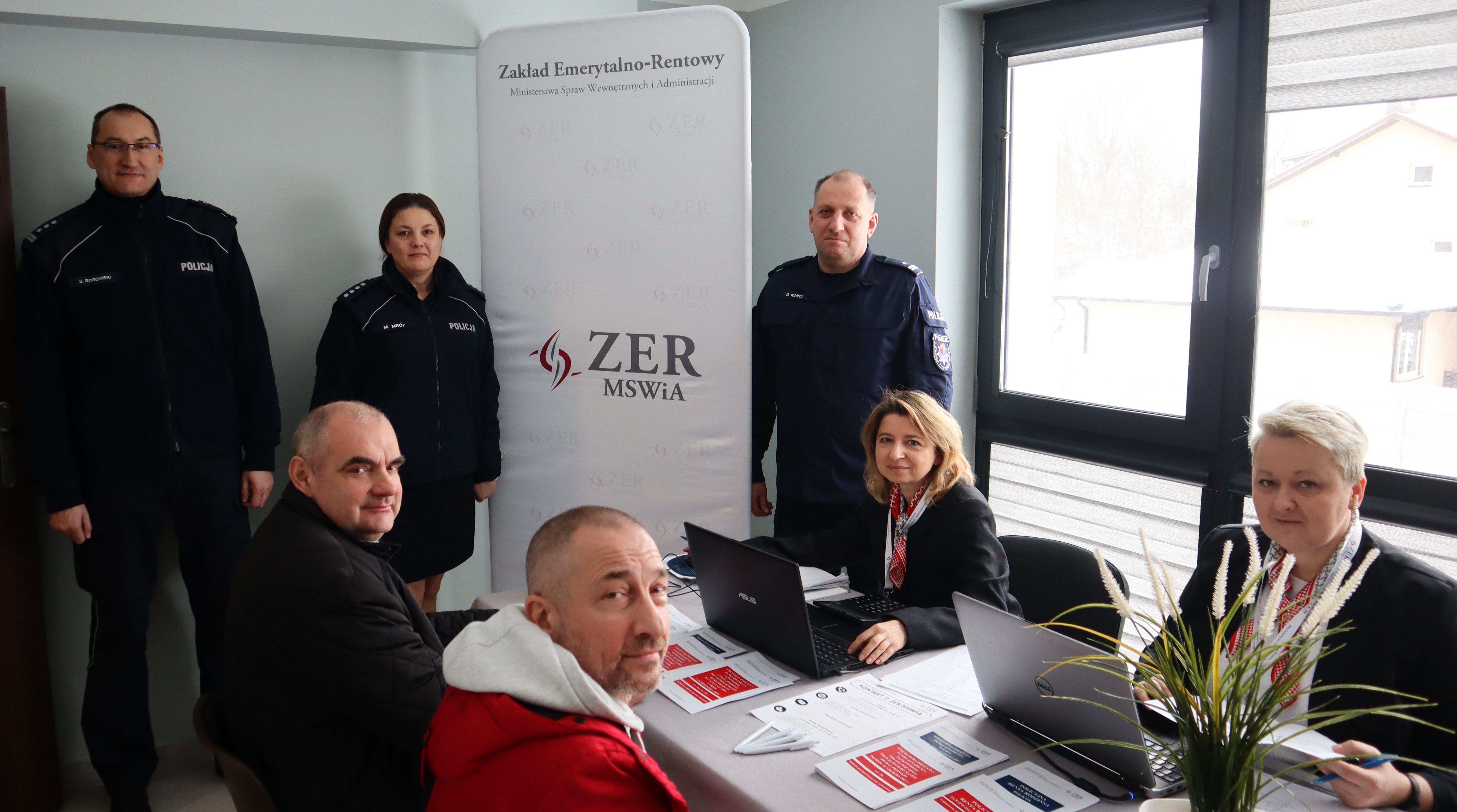 W tym czasie, gdy emeryci mundurowi dzielili się swoim doświadczeniem i radą z emerytami cywilnymi, okazję do uzyskania porad mieli także funkcjonariusze z pobliskiej Komendy Powiatowej Policji w Mińsku Mazowieckim. Przy specjalnie zorganizowanym punkcie informacyjnym ZER MSWiA funkcjonariusze mogli od Pani Moniki Miecznikowskiej, Naczelnik Wydziału Obsługi Klientów oraz Pani Beaty Grabińskiej, Zastępcy Naczelnika Wydziału Świadczeń i Egzekucji, uzyskać informacje w zakresie świadczeń emerytalno-rentowych przysługujących z zaopatrzenia emerytalnego. Wielu Policjantów skorzystało również z dedykowanego funkcjonariuszom służb mundurowych kalkulatora emerytalnego, za pośrednictwem którego uzyskali wyliczenie potencjalnej wysokości emerytury. W rozmowę z funkcjonariuszami włączyła się również Pani Dyrektor Małgorzata Zdrodowska, która zachęcała wszystkich do pozostania w służbie.