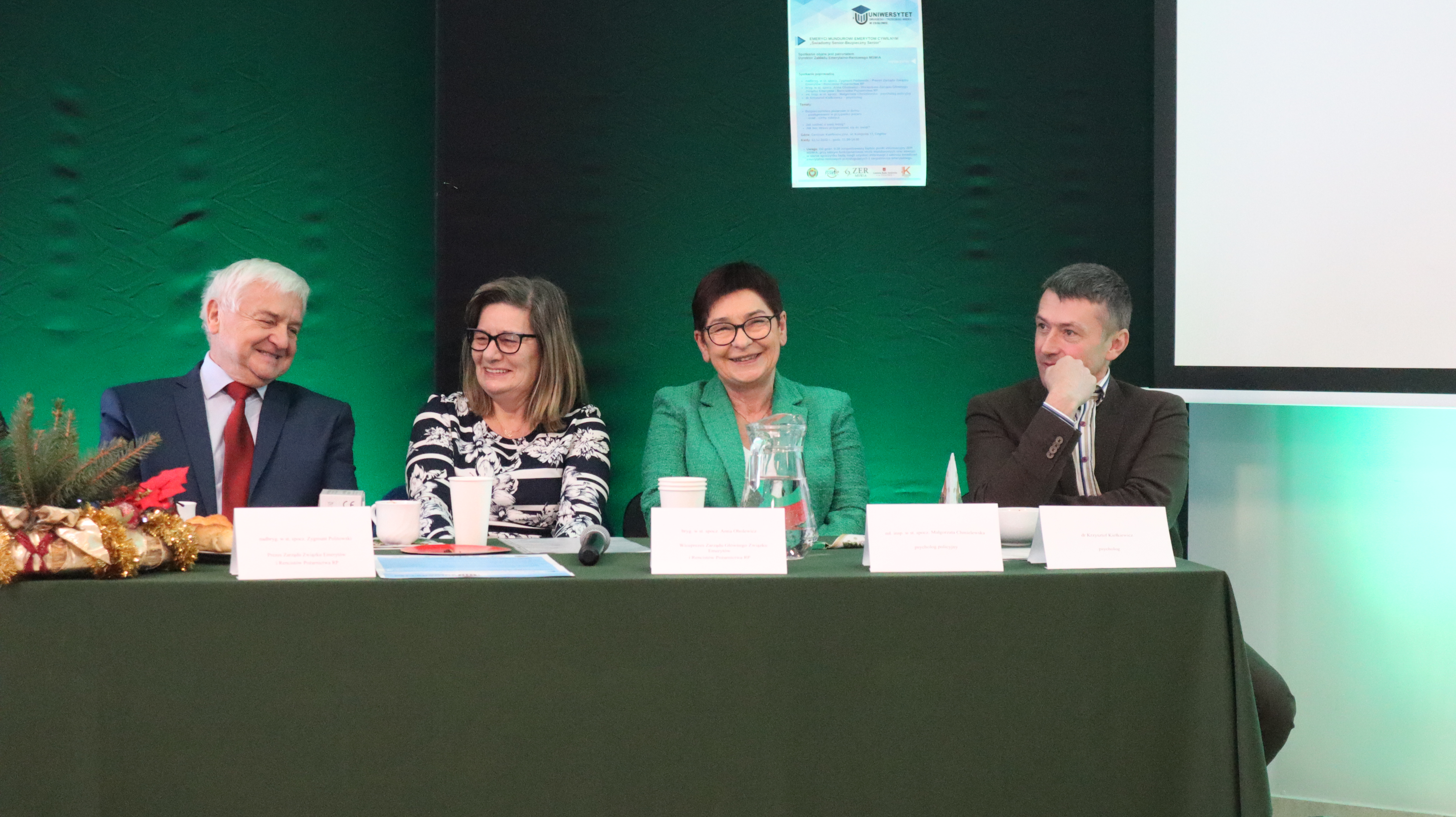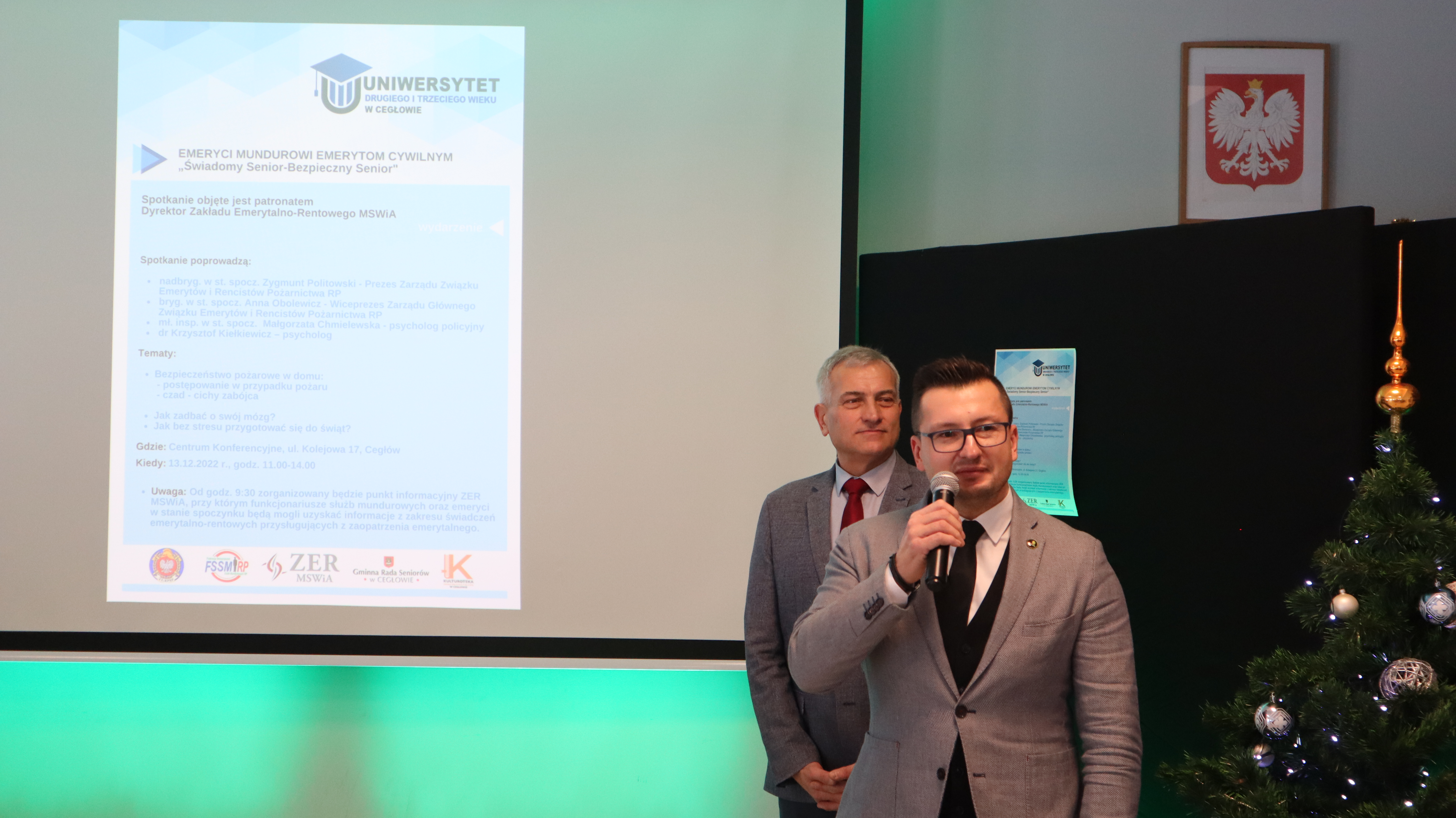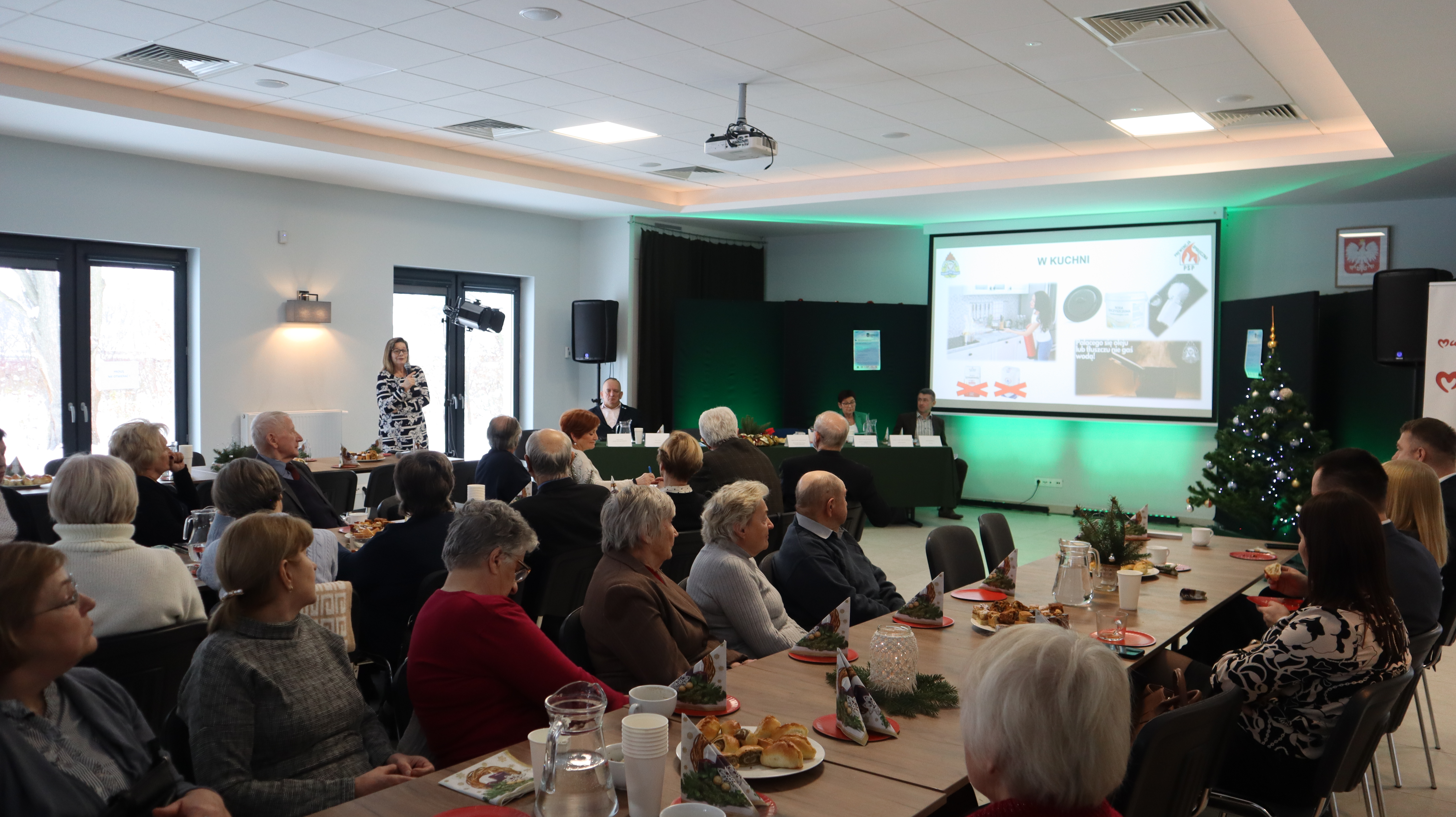 Tematem przewodnim tego spotkania było omówienie zasad bezpieczeństwa pożarowego w domu i postępowania w przypadku wystąpienia pożaru, o których opowiadała bryg. w st. spocz. Pani Anna Obolewicz. Uczestnicy mieli też okazję wysłuchać cennych wskazówek, jak bez stresu przygotować się do świąt, udzielanych przez psycholog policyjną mł. insp. w st. spocz. Panią Małgorzatę Chmielewską. Natomiast o tym w jaki sposób dbać o swój mózg i co robić, aby prawidłowo funkcjonował, tłumaczył psycholog dr Krzysztof Kiełkiewicz.