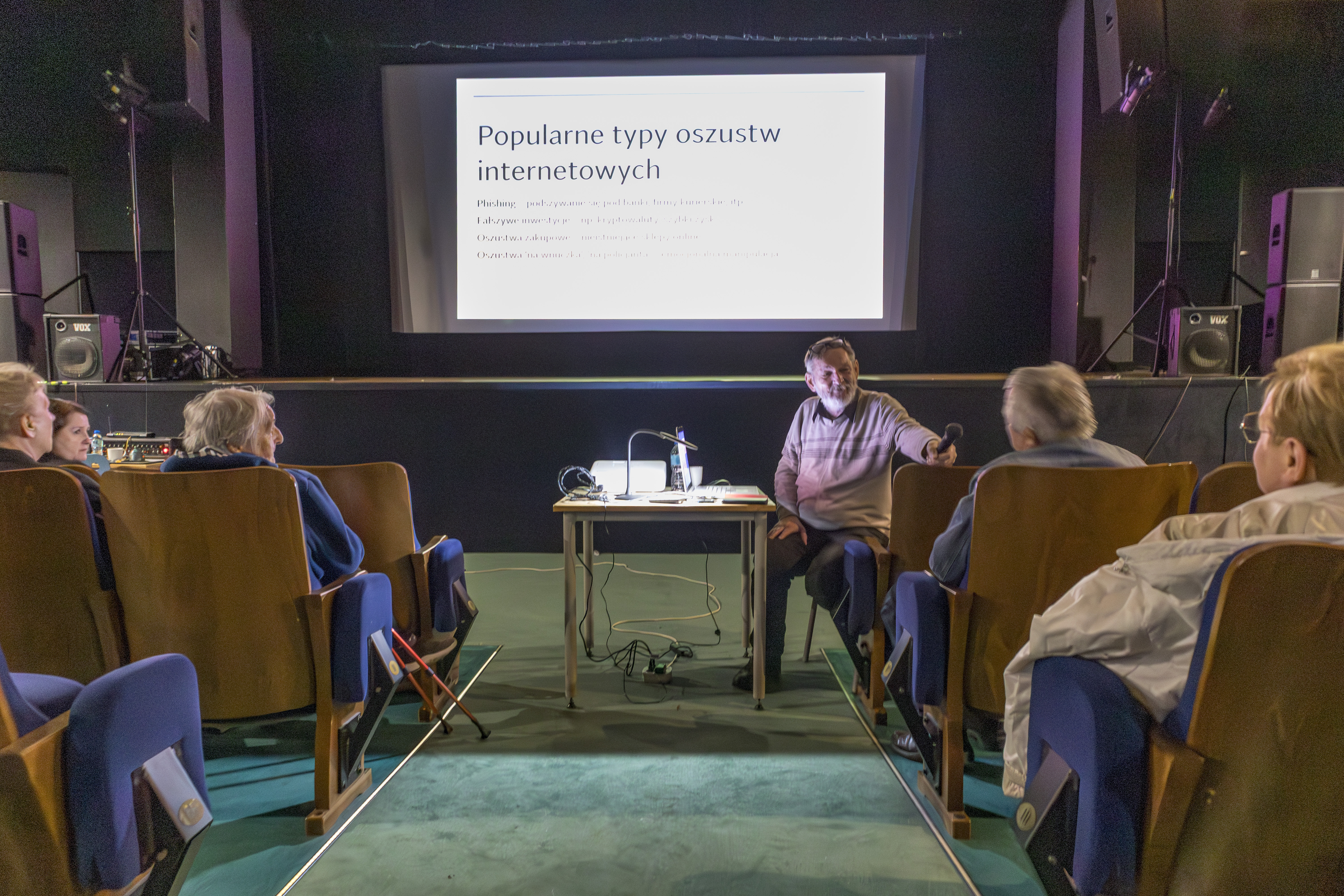 Podczas omawiania tematu dr Krzysztof Jakubski przedstawił przykłady wielu oszustw i zaprezentował sposoby ich unikania. Zwrócił też uwagę na konieczność regularnego aktualizowania oprogramowania, tworzenia silnych haseł do kont internetowych oraz na dwuskładnikową formę zabezpieczeń.