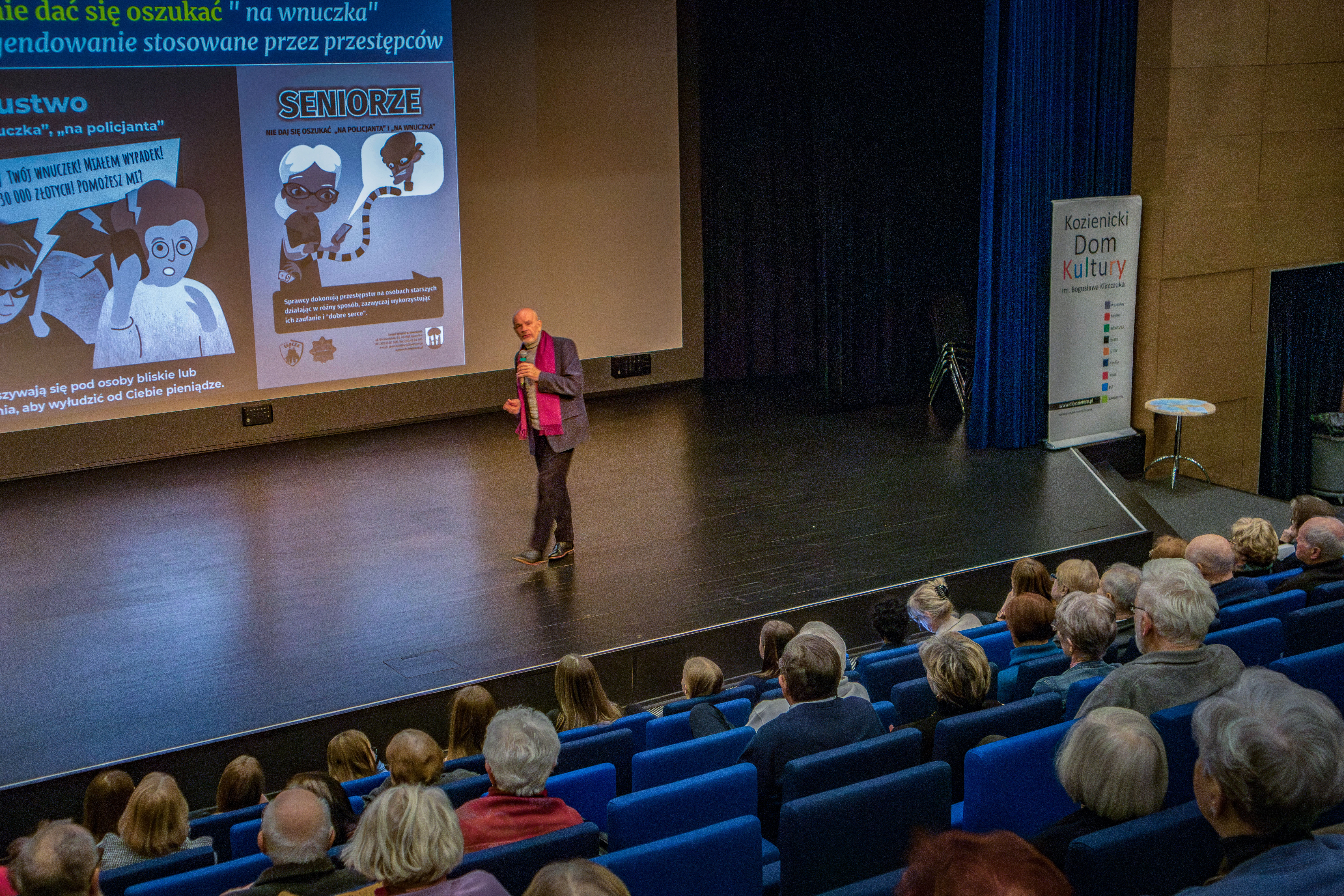 19 lutego 2025 r. w Kozienickim Domu Kultury odbyło się pierwsze, z wielu zaplanowanych na ten rok, spotkanie z seniorami - realizowane w ramach prowadzonej od ponad dwóch lat inicjatywy społecznej „Świadomy Senior-Bezpieczny Senior” prowadzonej pod patronatem Zakładu Emerytalno-Rentowego MSWiA. Wykład na temat praktykowanych przez oszustów metod na wnuczka, policjanta lub inne legendowania poprowadził gen. insp. w st. spocz. Leszek Szreder, Wiceprezes Stowarzyszenia Generałów Policji RP.