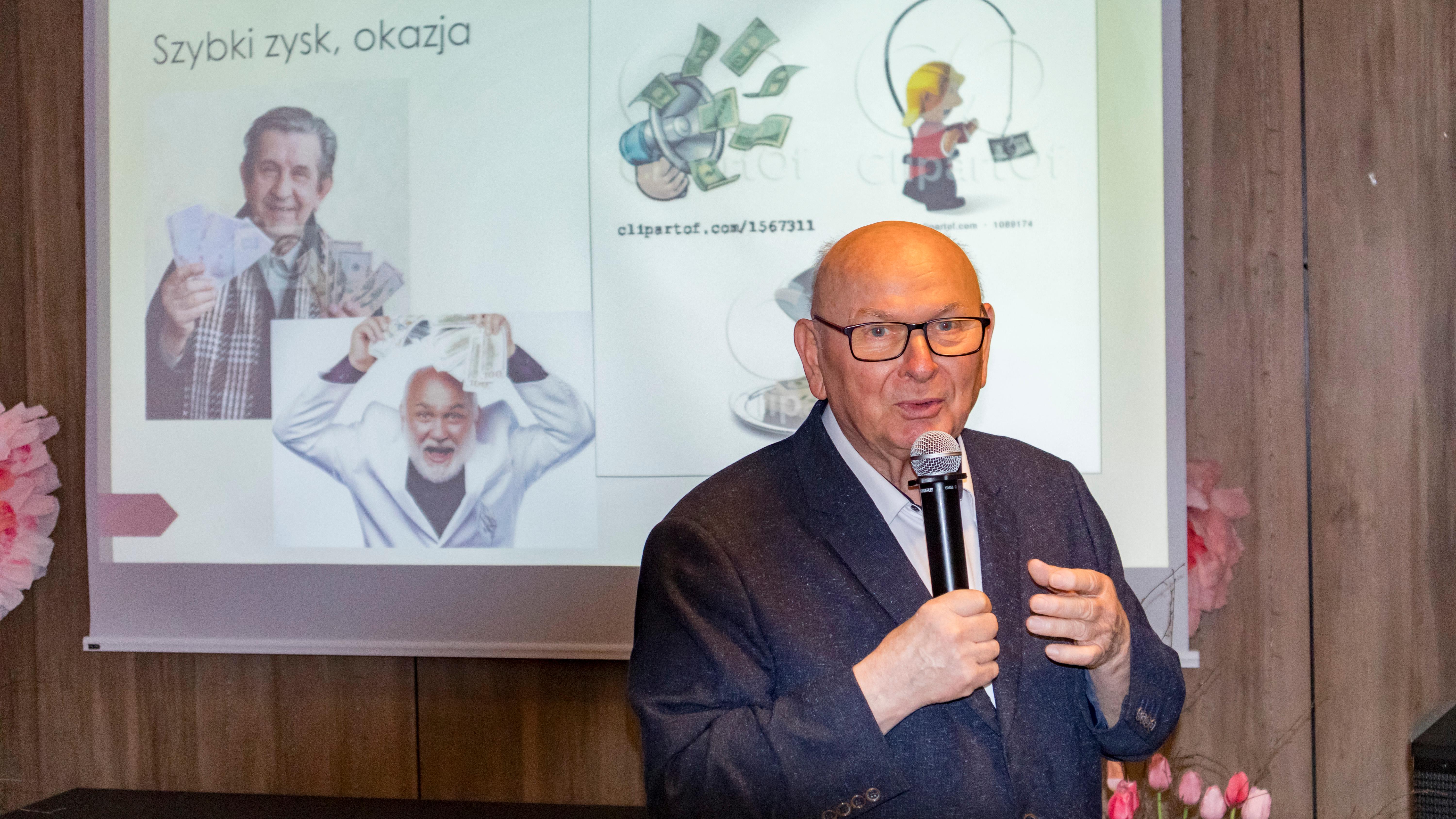 Dobre rady i wskazówki jak uchronić się przed oszustami, seniorzy otrzymali także od dra Krzysztofa Kiełkiewicza, który wyjaśnił jak działa mózg w sytuacjach trudnych oraz jak łatwo ulega się emocjom i podejmuje nieracjonalne działania pod wpływem silnych wrażeń, takich jak strach, lęk o bliskie osoby czy poczucie winy.