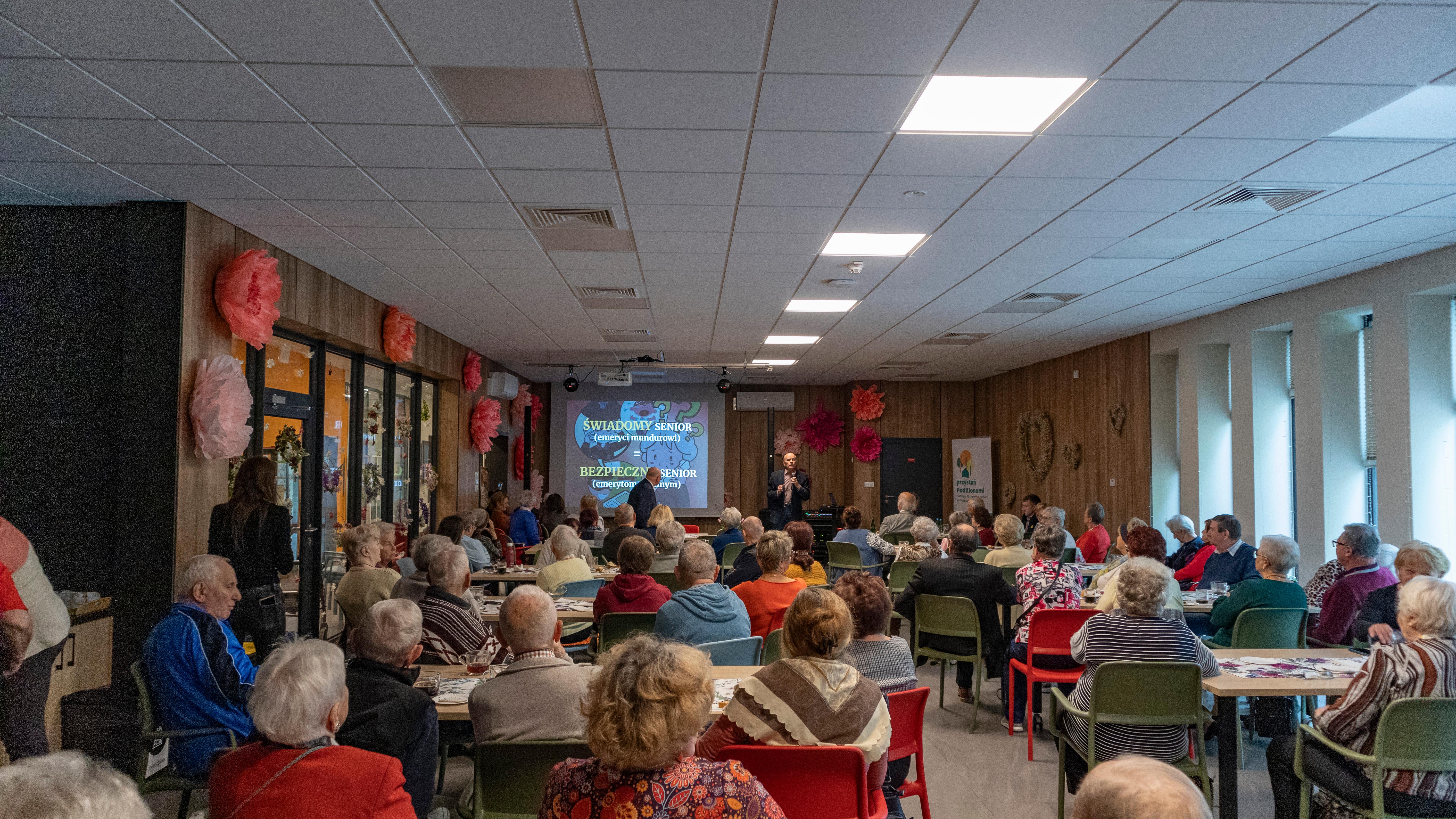 Dzisiaj będę mówił o tym, jak nie dać się oszukać metodą na wnuczka, Policjanta lub podobne legendowanie, dlatego rad jestem z tego, że tak liczne grono seniorów, dzięki zdobytej wiedzy, nie będzie już łatwym celem