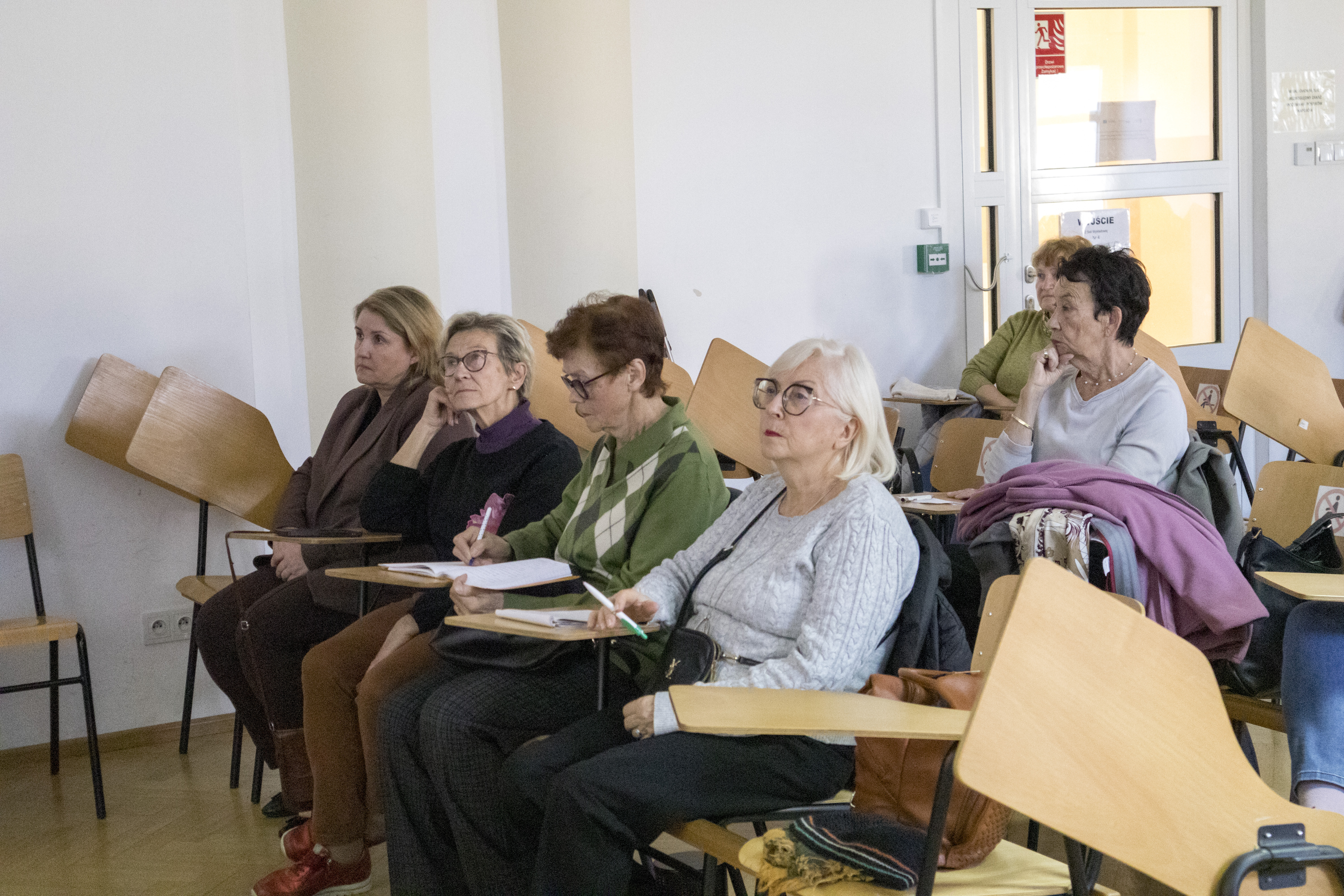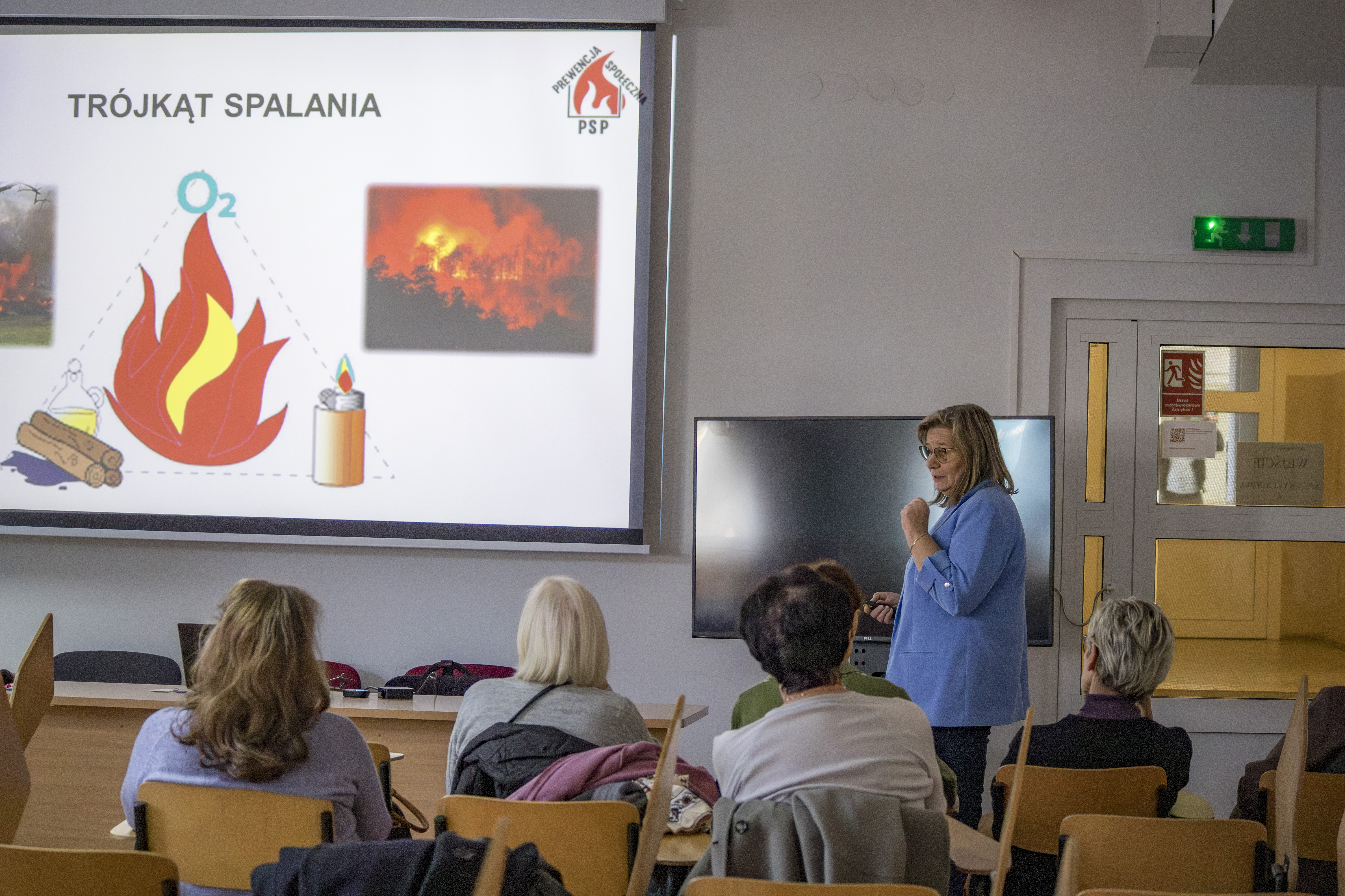 Prelekcję poprowadziła bryg. w st. spocz. dr Anna Obolewicz, strażak pożarny z wieloletnim doświadczeniem, która w przystępny sposób omówiła zasady bezpieczeństwa pożarowego w domu. Uczestnicy dowiedzieli się, jak rozpoznawać i unikać zagrożeń pojawiających się w codziennych sytuacjach. W trakcie wykładu poruszono między innymi tematy zagrożeń występujących w domu, zasad ewakuacji podczas pożaru, sposobu prawidłowego wzywania służ czy zatrucia tlenkiem węgla.