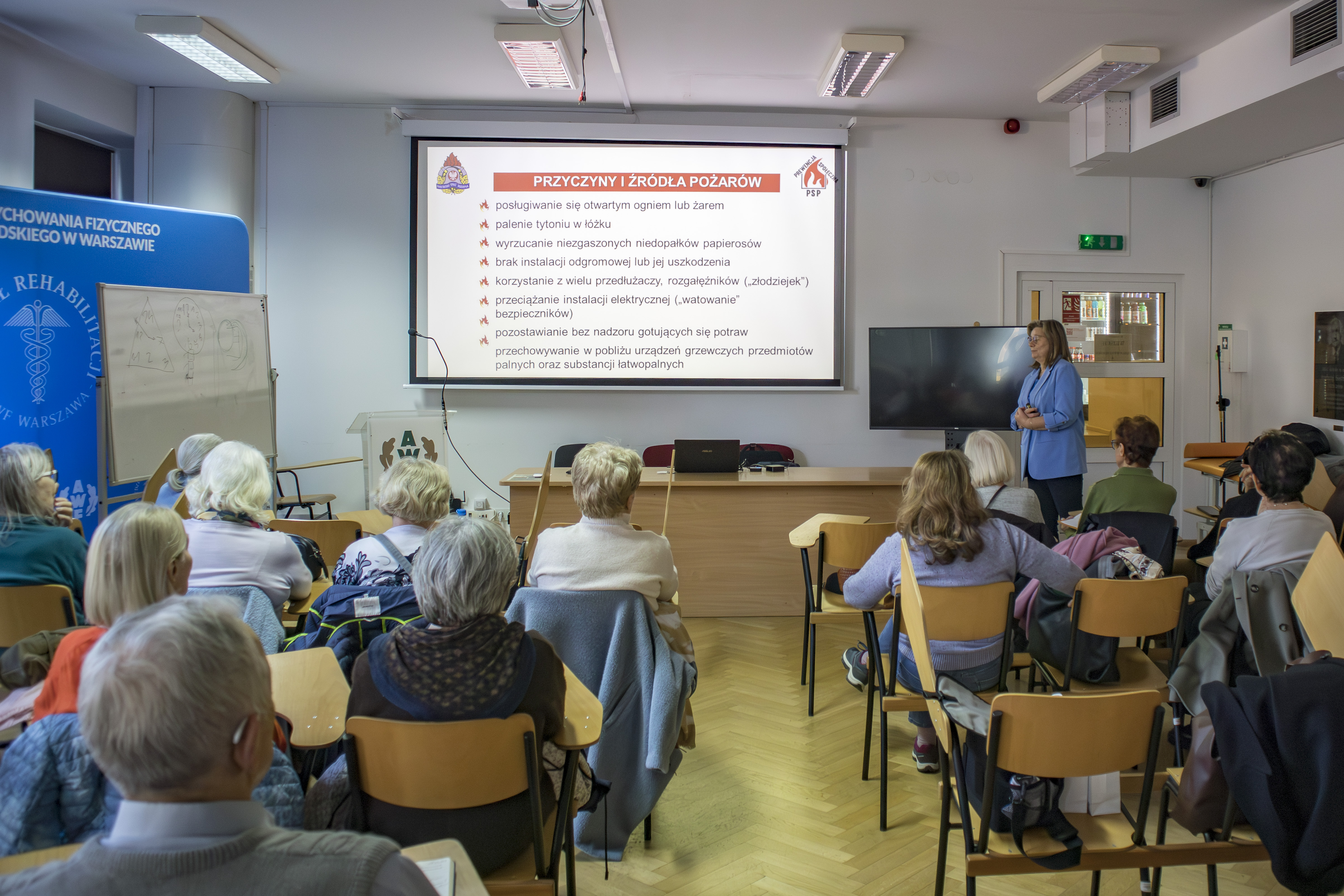 6 listopada 2025 r. studenci Uniwersytetu Trzeciego Wieku Akademii Wychowania Fizycznego w Warszawie ponownie postawili na czujność i praktyczną wiedzę. Tego dnia, na zaproszenie Pani prof. Ewy Kozdroń - Prezes UTW AWF, odbył się wykład poświęcony bezpieczeństwu pożarowemu w domu. Spotkanie odbyło się w ramach prowadzonej pod patronatem Dyrektora Zakładu Emerytalno-Rentowego MSWiA inicjatywy społecznej „Świadomy Senior-Bezpieczny Senior”.