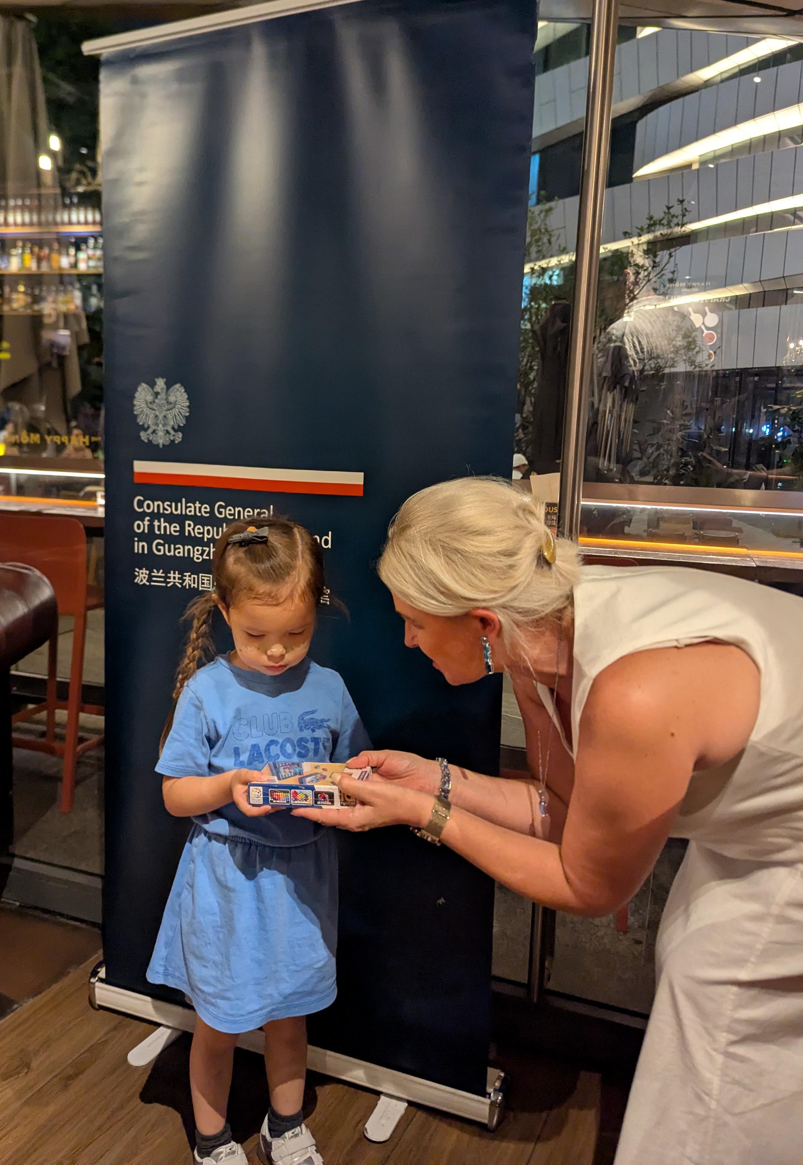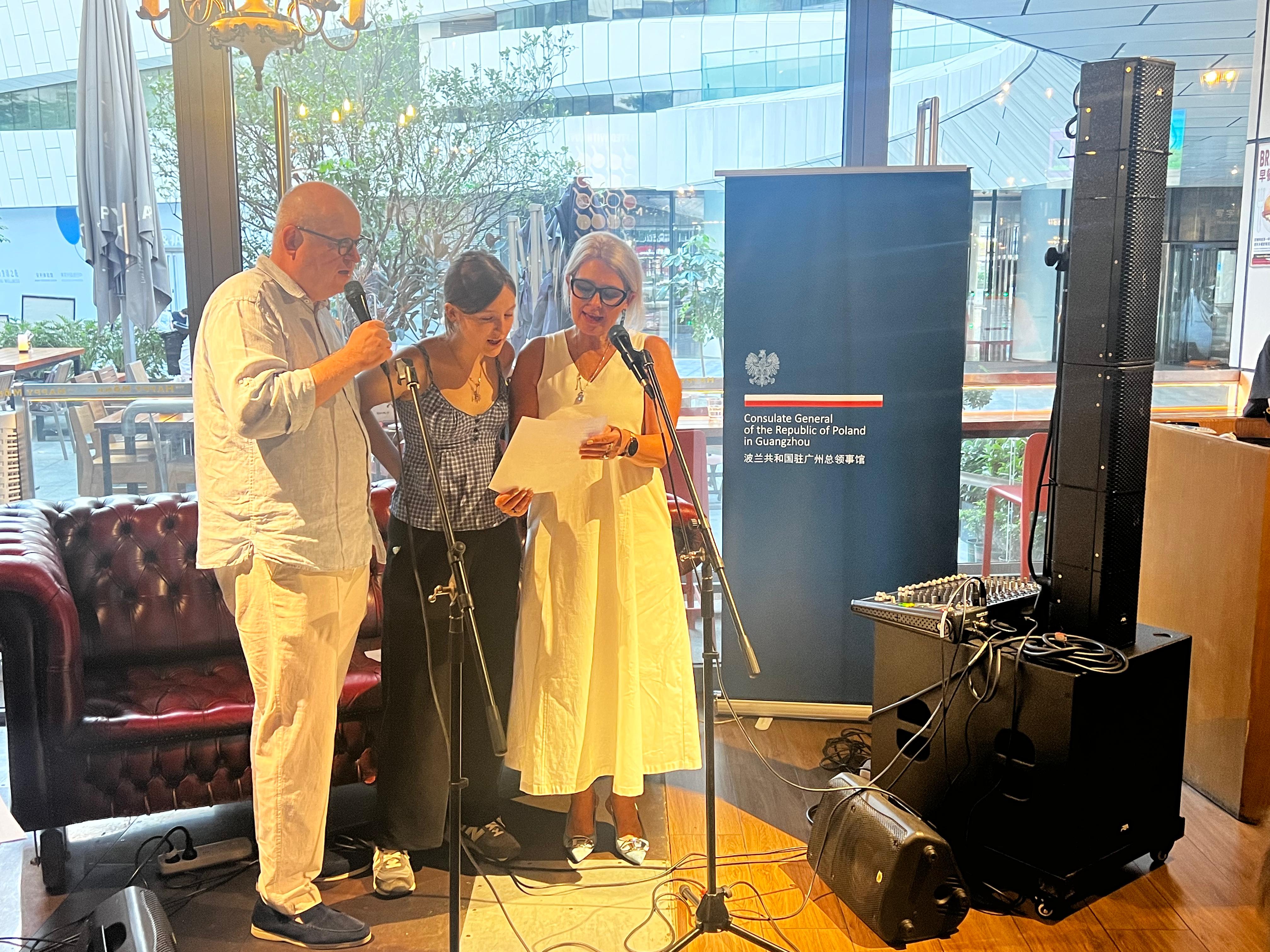 活动内容丰富多彩,兼顾了不同年龄段儿童的兴趣与需求。亮点环节包括儿童披萨制作烹饪工作坊,以及融合教育意义的户外寻宝游戏——孩子们需寻找与波兰文化相关的象征元素。波兰歌曲卡拉OK环节则让亲子家庭齐唱经典旋律,既增进了互动乐趣,也强化了文化认同与社区凝聚力。活动尾声,总领事先生携夫人阿格涅什卡·绍赫奈尔-诺沃特尼亚克(Agnieszka Szochner-Nowotniak)女士为每位小朋友颁发了书籍和益智玩具作为纪念品,以奖励他们的积极参与,这一环节深受家长与孩子们的喜爱。总领馆还准备了精致茶歇,宾客们在轻松愉悦的氛围中畅叙交流,为活动画上圆满句号。