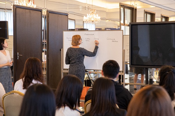 全体师生分为两组,第一组由大使夫人Izabella Zajączkowska带领体验了波兰点心—苹果派的全部制作过程,同时上了一堂波兰语法课。 第二组新生在Maria Wejs - Domżalska参赞的带领下参观了使馆,并通过视频, 工作人员讲解, 嘉宾的讲座, 对波兰的文化以及美食有了更深入的了解。
