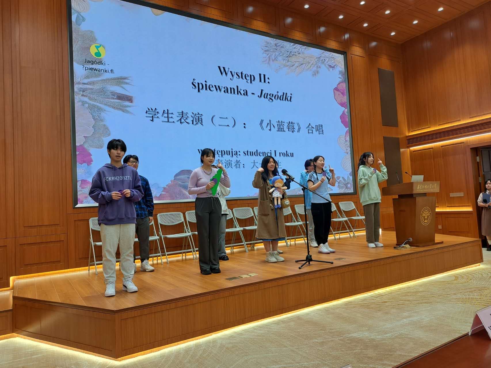 活动中,广东外语外贸大学波兰语系的学生们还表演了节目,其中包括波兰语演讲和演唱著名波兰歌曲《Jagódki》。