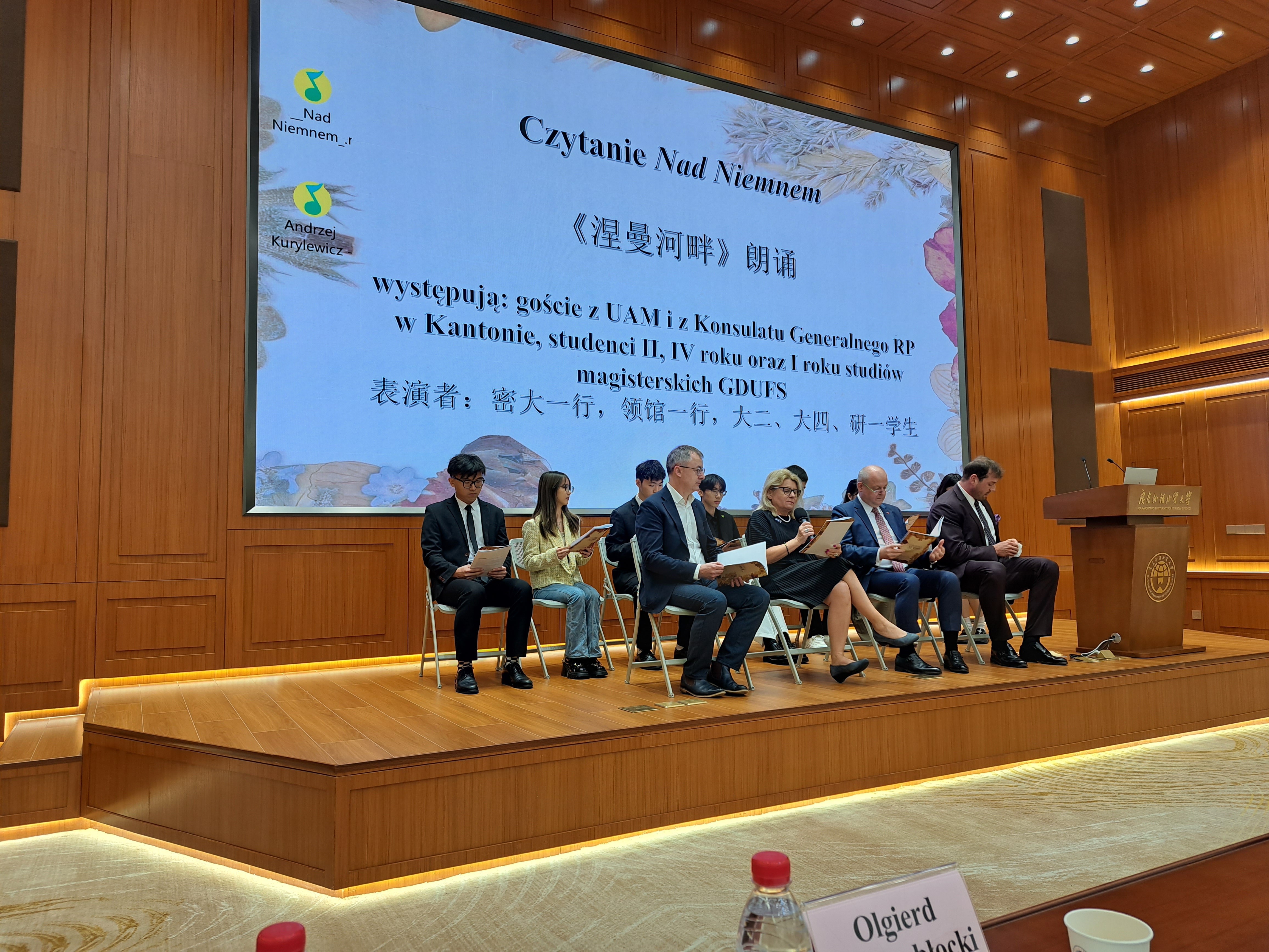 今年的阅读作品是 Eliza Orzeszkowa 的一篇题为《Nad Niemnem》的小说。小说片段由波兰驻广州总领事馆代表、学生和特邀嘉宾(波兹南亚当密茨凯维奇大学校长Bogumiła Kaniewska教授、国际合作副校长Rafał Witkowski教授、波兰和古典语言学学院院长Tomasz Mizerkiewicz教授 和大波兰省委员会的 Paulina Stochniałek 女士)一起朗读。