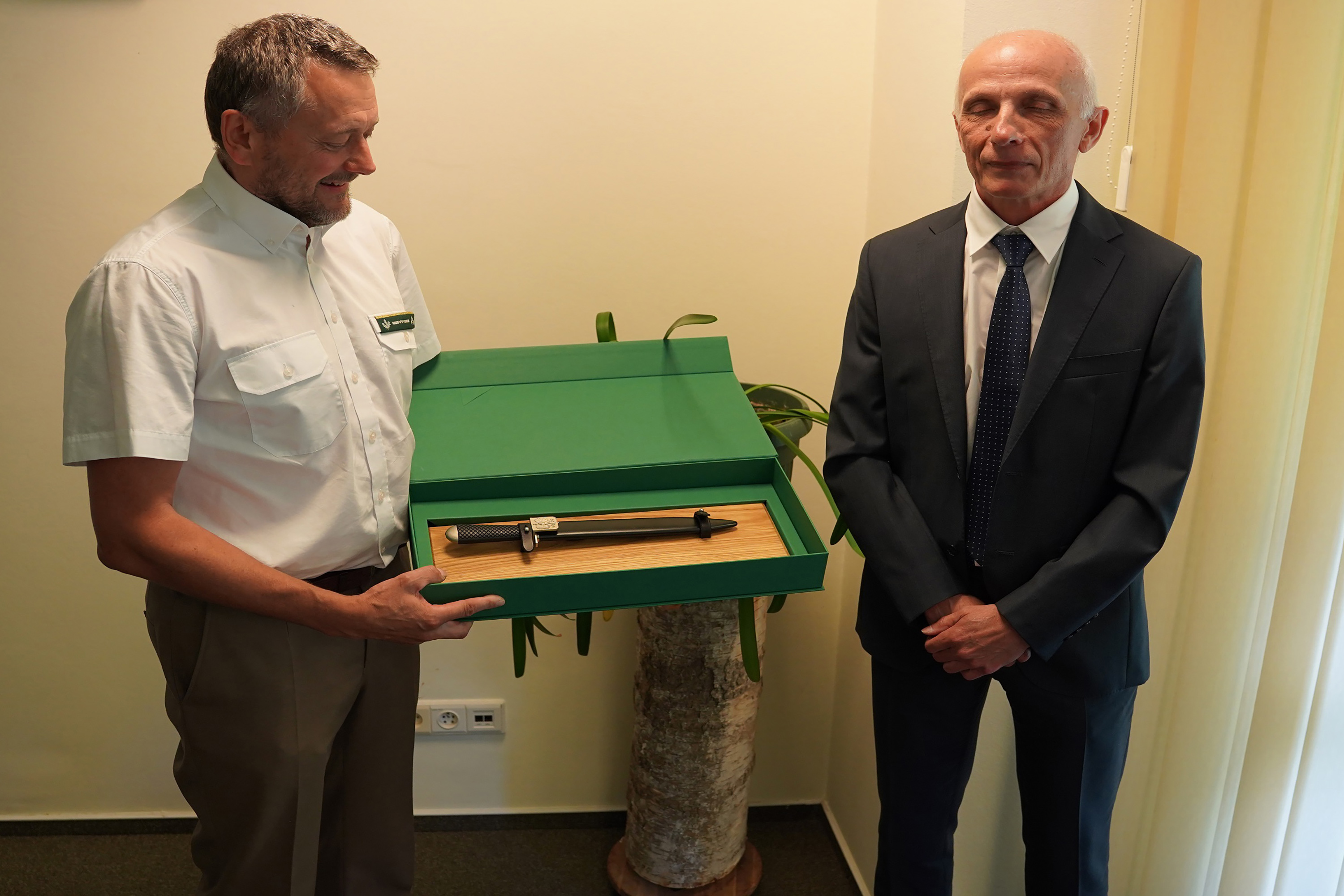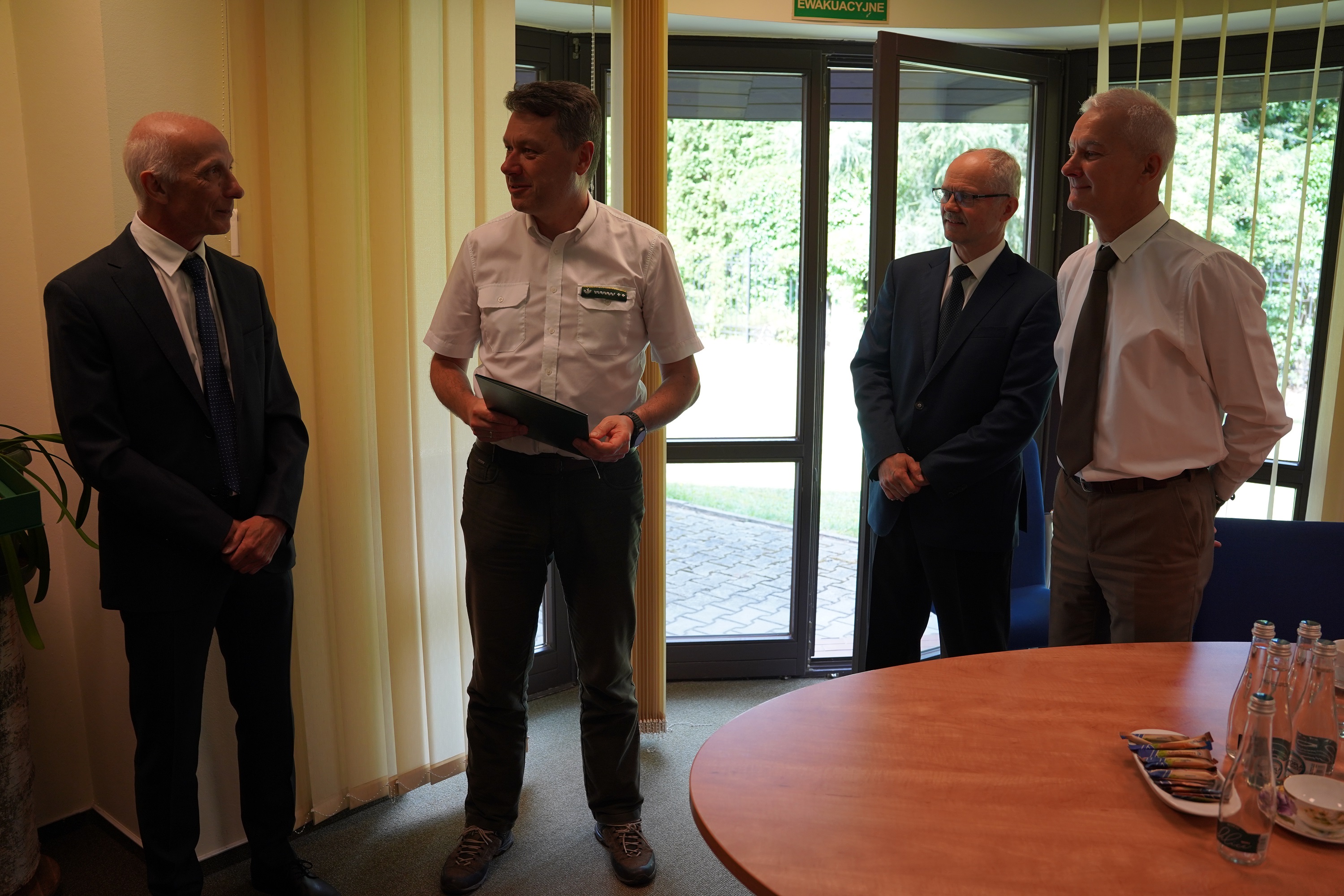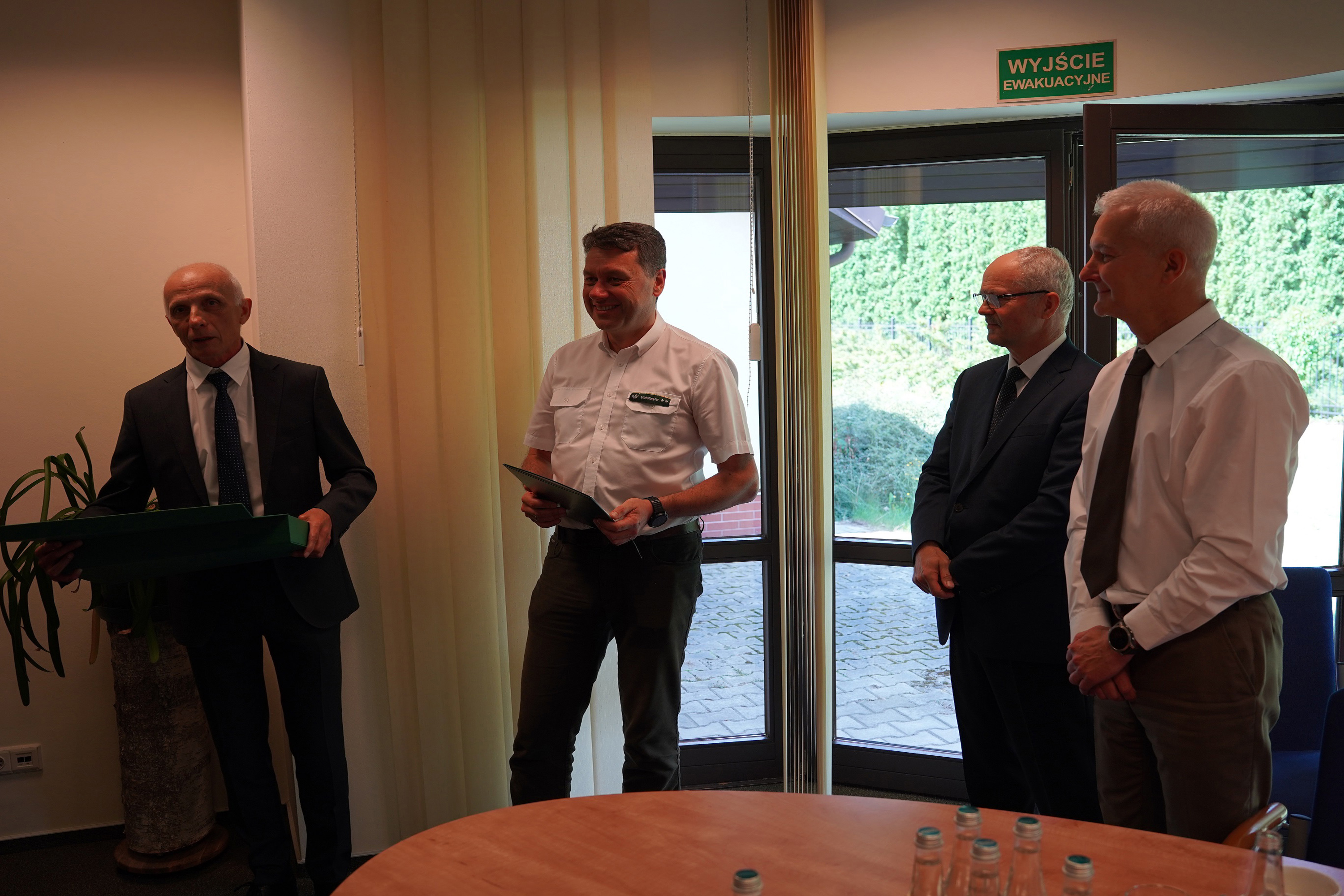 Wręczenia dokonał Pan Marcin Polak zastępca Dyrektora Generalnego Lasów Państwowych ds. Ekonomicznych.