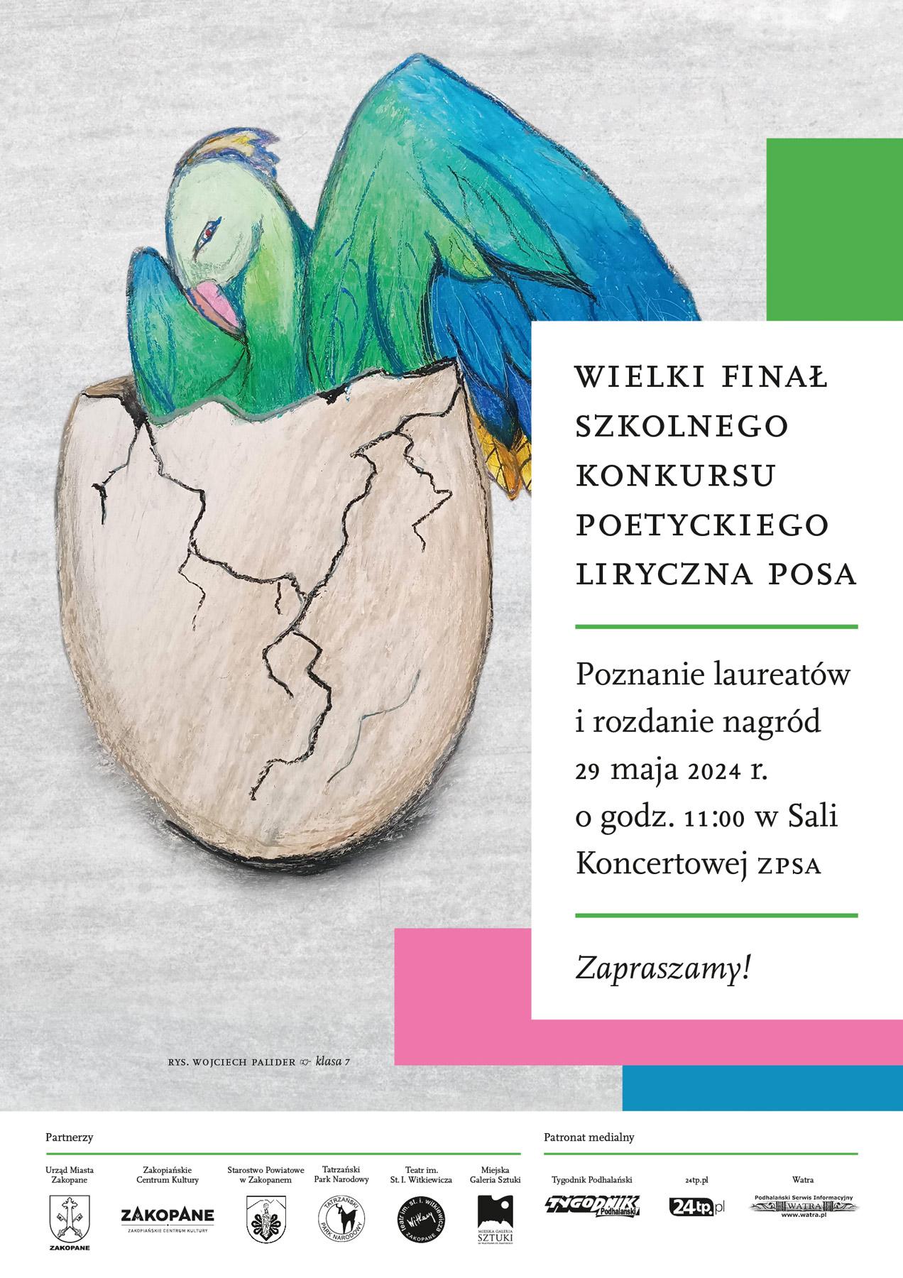 Wszystkich sympatyków dziecięcej i młodzieżowej twórczości poetyckiej zapraszamy na Wielki Finał Szkolnego Konkursu Poetyckiego Liryczna POSA! 29 maja/środa g.11:00 Sala Koncertowa ZPSA