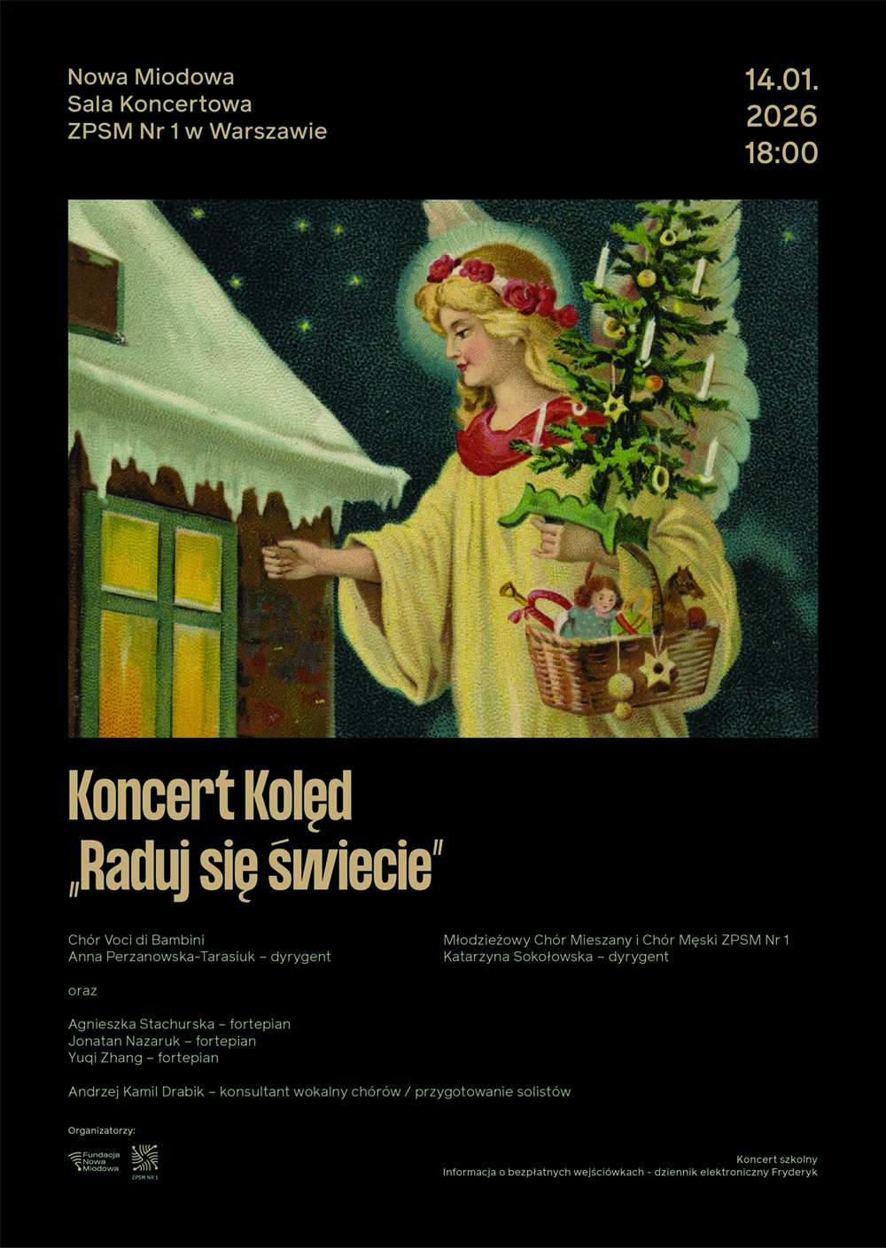 Koncert Kolęd „RADUJ SIĘ ŚWIECIE” w wykonaniu Chórów ZPSM Nr 1 - 14.01.26 20.12.2025 Koncert Kolęd „RADUJ SIĘ ŚWIECIE” w wykonaniu Chórów ZPSM Nr 1 - 14 stycznia o godzinie 18.00