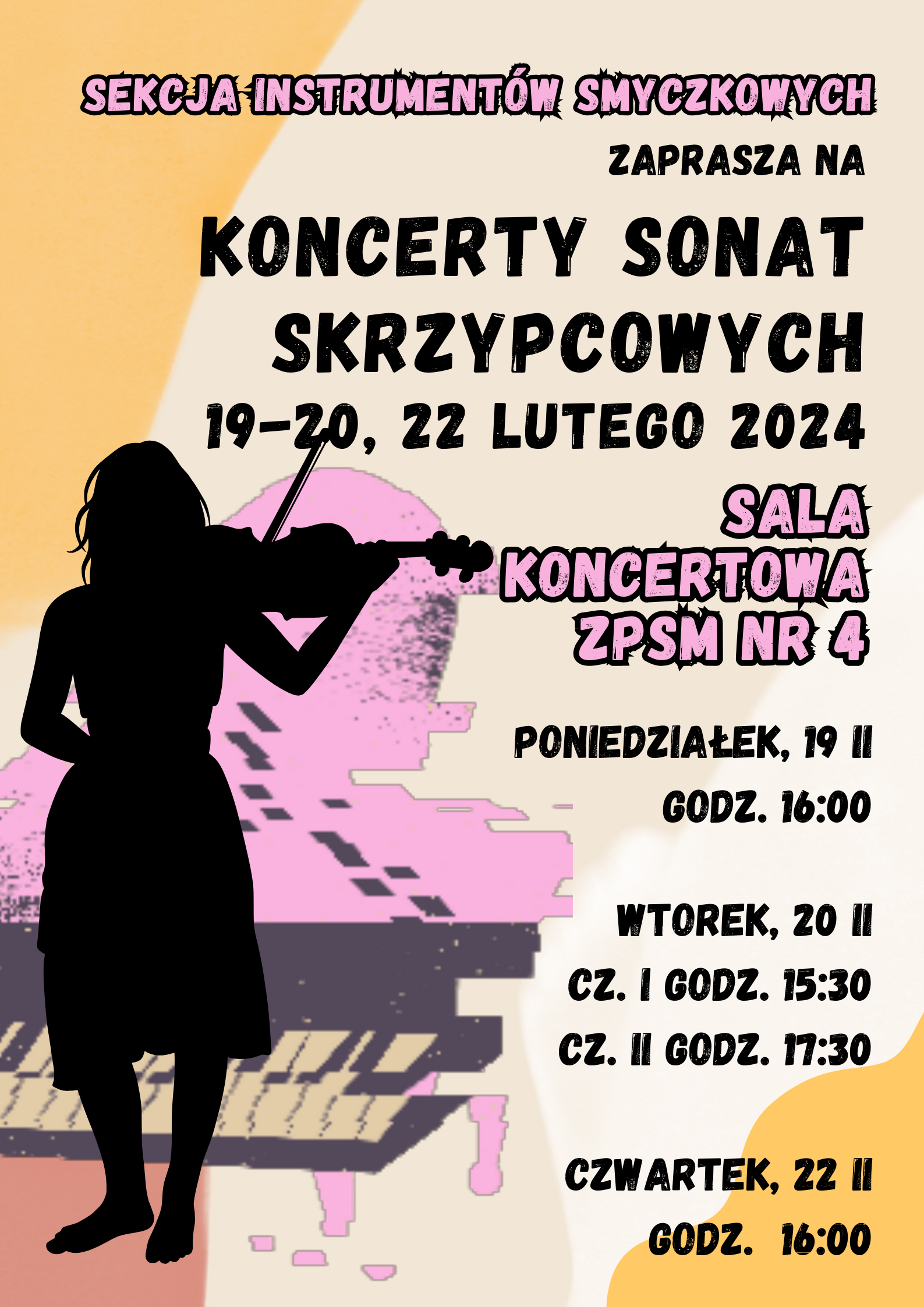 Sekcja Instrumentów Smyczkowych, Harfy i Akordeonu zaprasza na KONCERTY SONAT SKRZYPCOWYCH ,