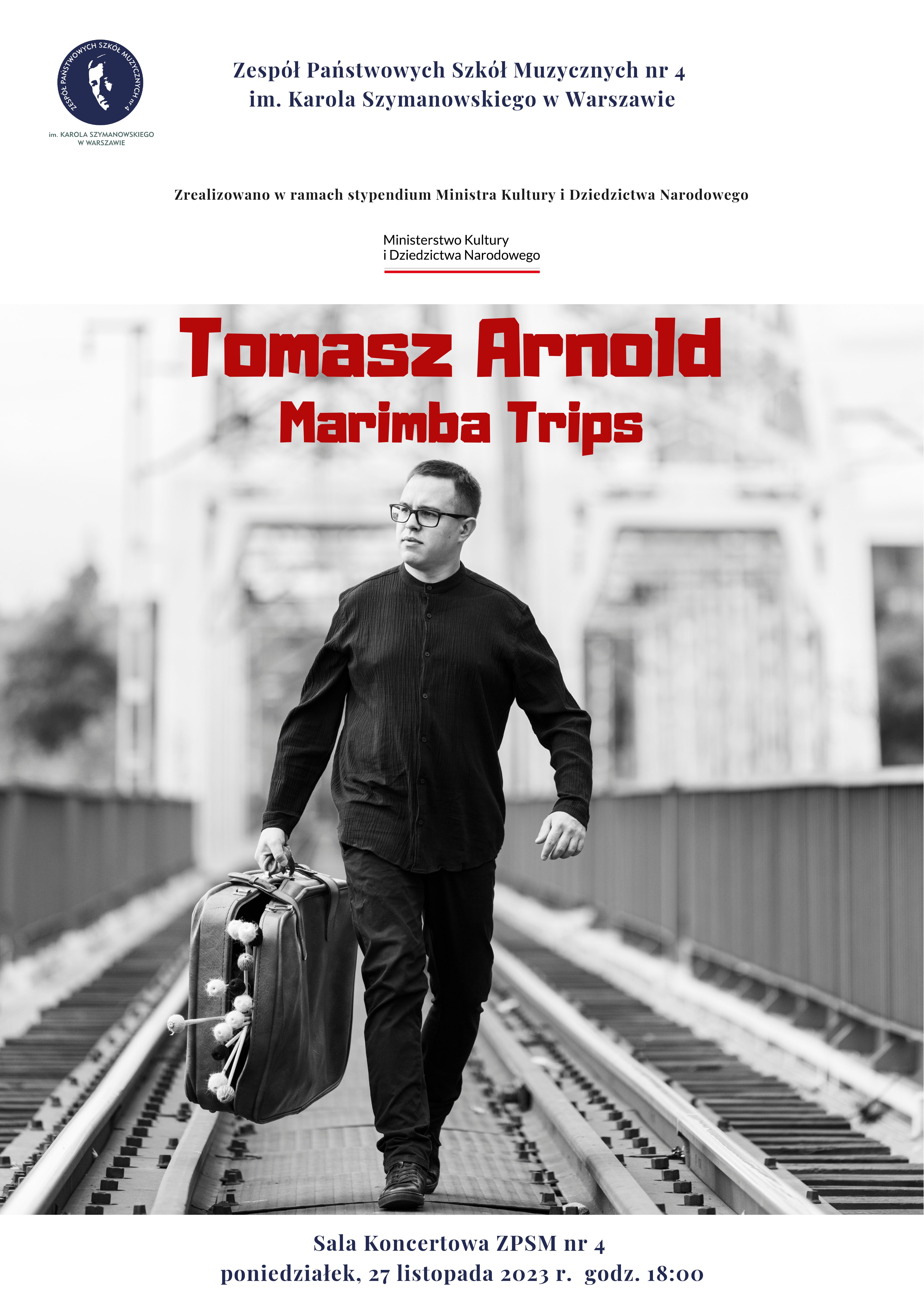 W poniedziałek, 27 listopada 2023 r. zapraszamy na ciekawe wydarzenie. Gościem naszej Szkoły będzie dr Tomasz Arnold, znakomity perkusista młodego pokolenia, a także kompozytor i pedagog, pochodzi z Krakowa, kształcił się na uczelniach w USA. Jest aktywnym muzykiem solowym, kameralnym i orkiestrowym, z szerokim wachlarzem muzycznych zainteresowań takich jak muzyka klasyczna, współczesna, elektroniczna i improwizowana, ale również muzyka dawna wykonywana na marimbie. Występował w wielu krajach świata. Jest zwycięzcą kilku międzynarodowych konkursów perkusyjnych i marimbowych (np. Percussive Arts Society 50th Anniversary International Solo Percussion Competition organizowanego podczas festiwalu PASIC w Indianapolis, USA). Jest laureatem wielu nagród, a także stypendystą m.in. Armand Zildjian Percussion Scholarship, Howard Hanson Scholarship, Marshal Seeman Scholarship oraz Ministra Kultury i Dziedzictwa Narodowego.