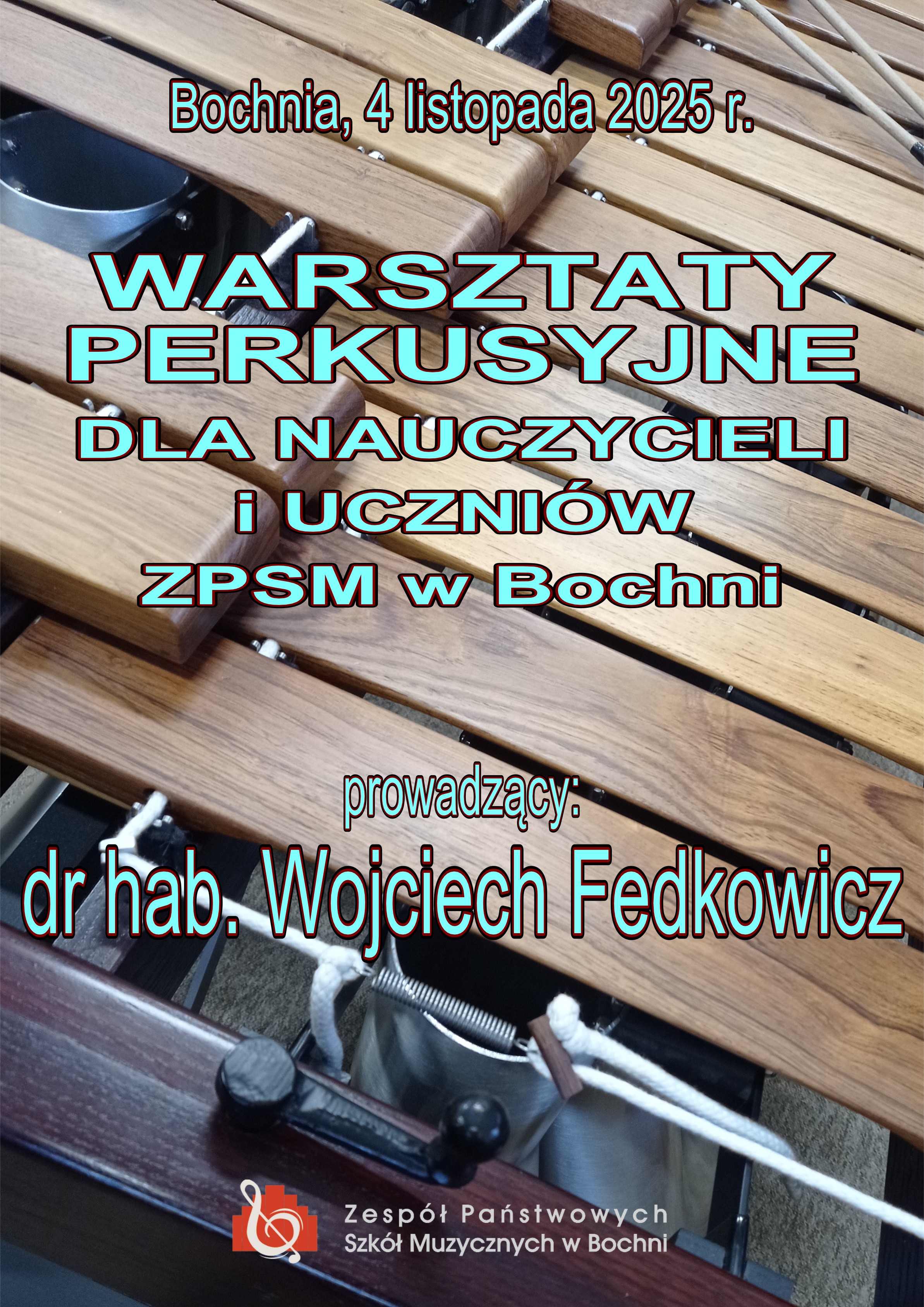 W dniu 4 listopada 2025 r. odbyły się w Naszej Szkole warsztaty dla nauczycieli i uczniów klas perkusji. Warsztaty prowadził pan dr hab. Wojciech Fedkowicz z Akademii Muzycznej im. Krzysztofa Pendereckiego w Krakowie.