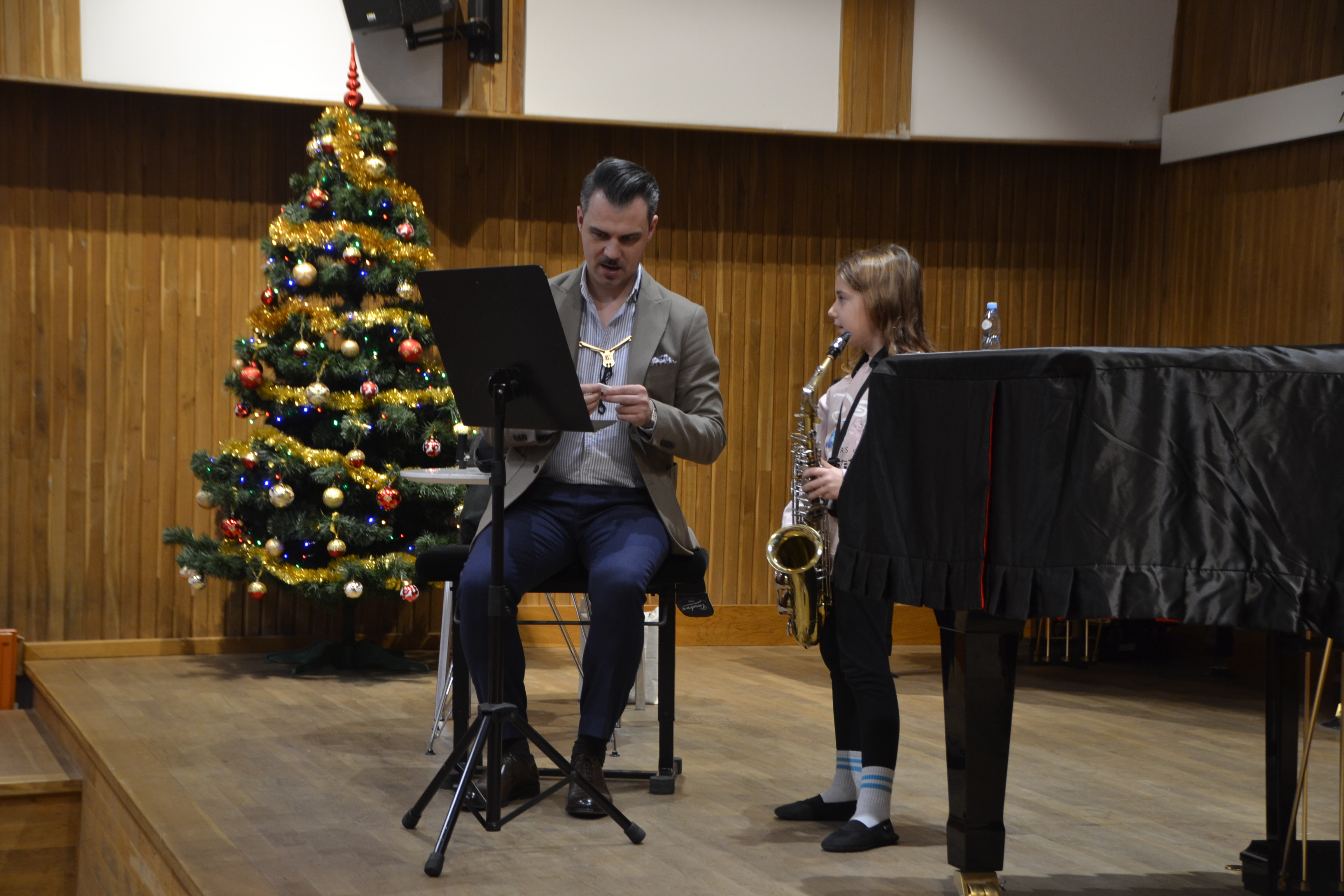 W dniu 12 grudnia 2023 r. odbyły się w Naszej Szkole warsztaty dla nauczycieli i uczniów klas saksofonu. Warsztaty prowadził pan dr Łukasz Nędza z Akademii Muzycznej im. Krzysztofa Pendereckiego w Krakowie.